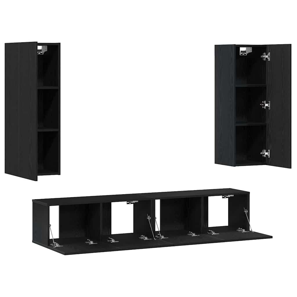 4 darabos TV szekrény szett, falra akasztható, fekete tölgy színben