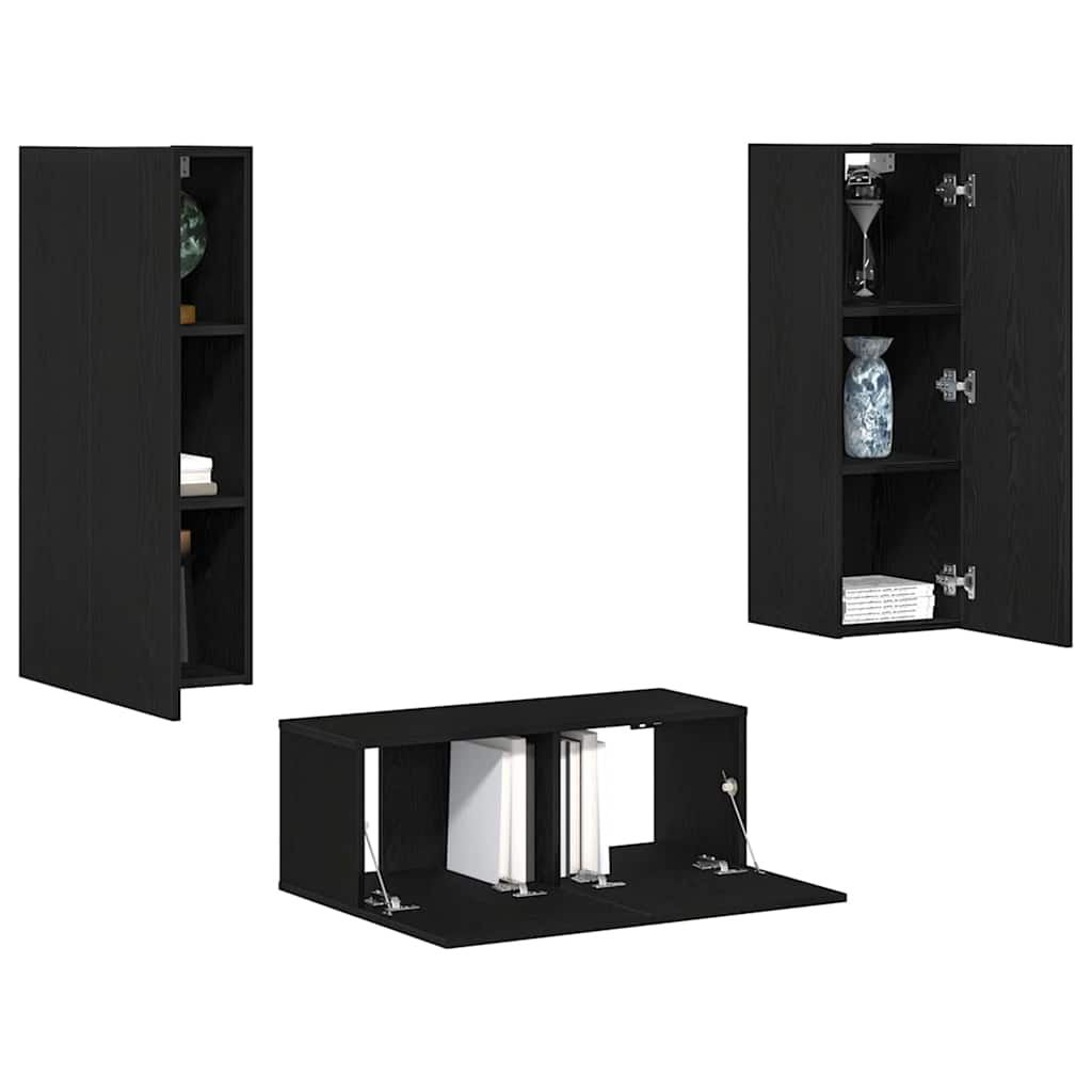 4 részes TV szekrény szett fekete tölgy rétegelt fa