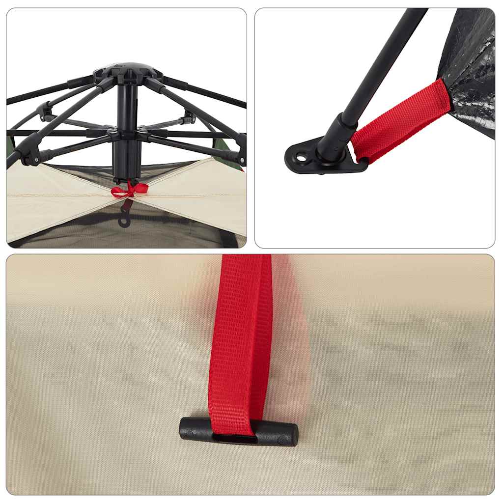 - Gyorskioldó rendszer: A gyorskioldó rendszerrel könnyedén felállíthatja a sátrat! Fektesse le a sátrat, helyezze egymásba az előre összeszerelt rudakat, amíg a helyükre nem kattannak, és már kész is!