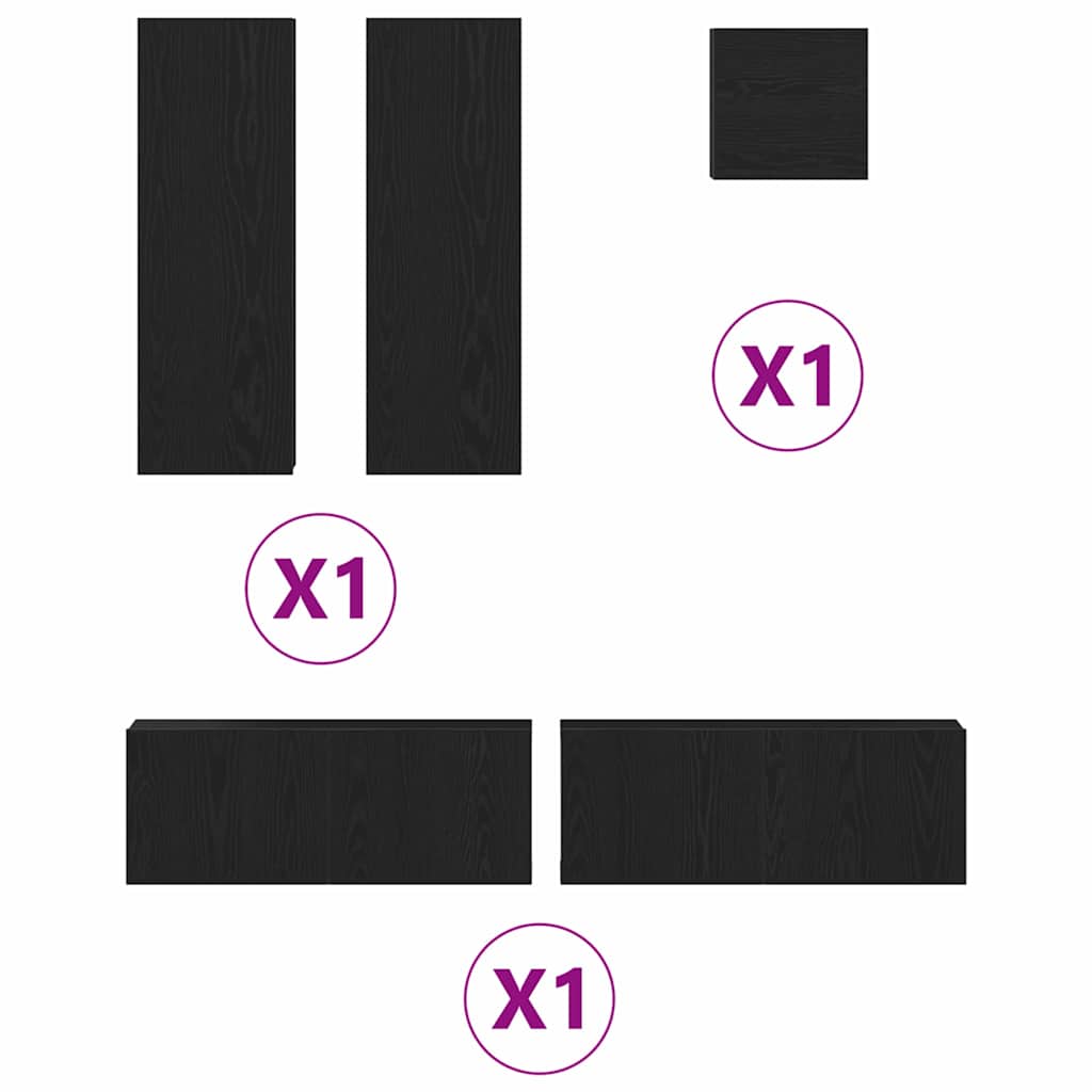 Ismerkedj meg a vidaXL 5 darabos TV állvány szettjével, stílusos fekete tölgyfa felülettel, ami feldobja a nappalid hangulatát, miközben rengeteg tárolási megoldást kínál.