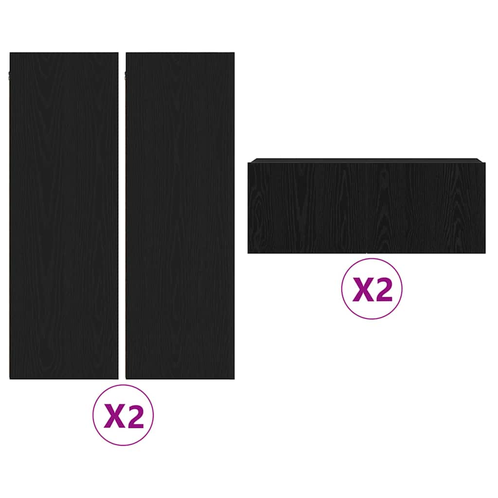 6 darabos TV szekrény szett - Fali rögzítés, fekete tölgy, mérnöki fa
