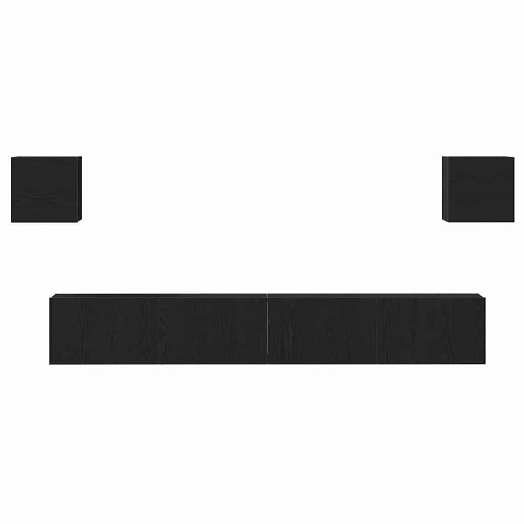 6 darabos TV-szekrény szett - Fali rögzítés, Fekete tölgy, Műszaki fa
