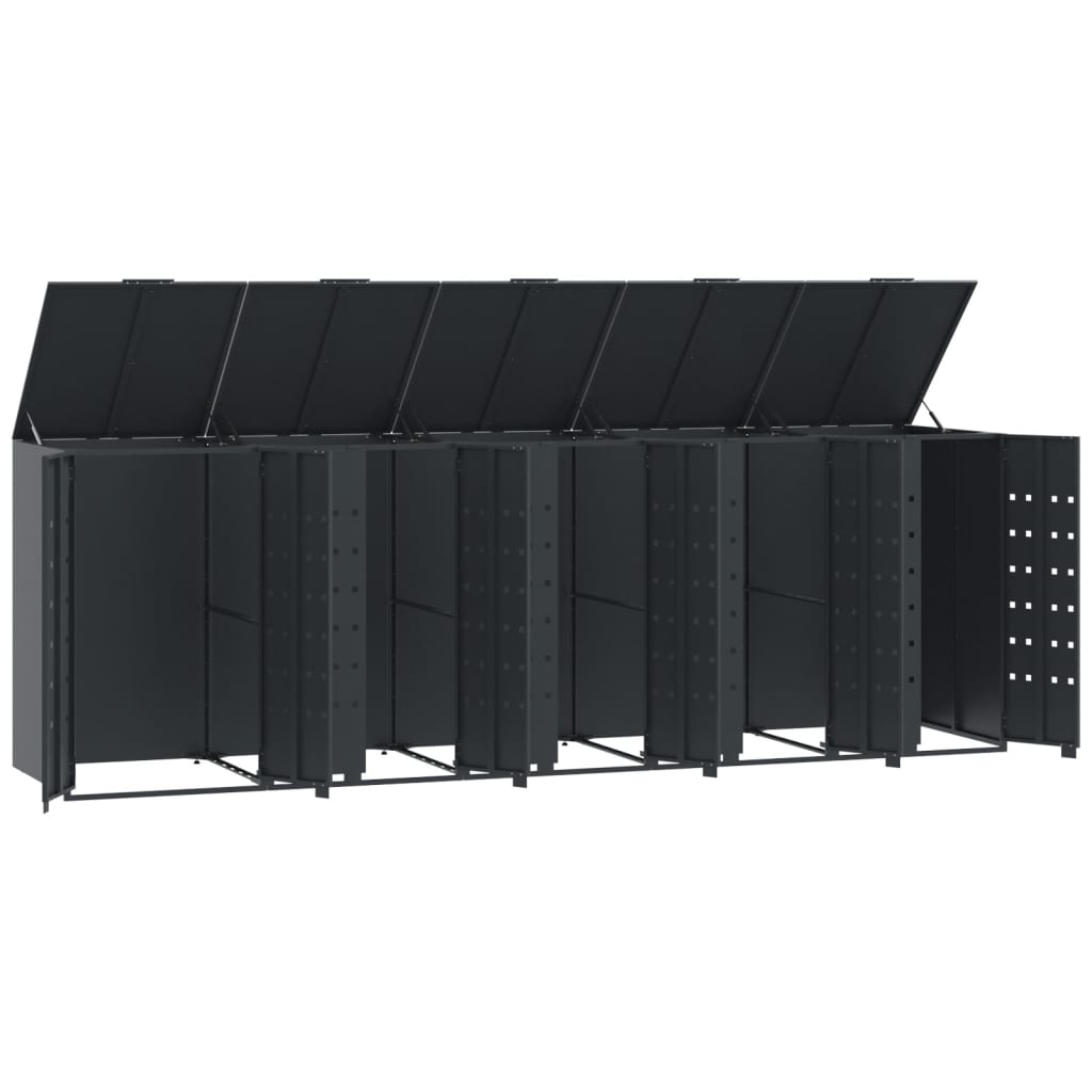 antracit acél kerekes tároló 5 szemeteskukához 345x79x117 cm