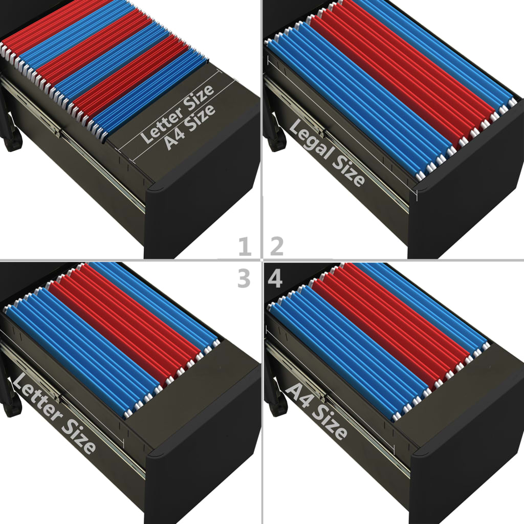 Ez az irodai szekrény acélból készült, így tartós és könnyen tisztítható. A 3 fiókkal és 1 zárral ellátott iratszekrényben rendezetten és biztonságban tarthatja iratait. Minden fiók 1 kivehető akasztórúddal van felszerelve, amely szabadon kombinálható levél méretű, legal méretű és A4-es függő iratmappa tárolására. A szekrény egy ceruzatartó tálcával is rendelkezik az asztala rendben tartásához. A 3 részes golyóscsapágyakkal ellátott fiókok zökkenőmentes nyitást és zárást biztosítanak, így még fokozott terhelés mellett is teljesen kihúzhatók.