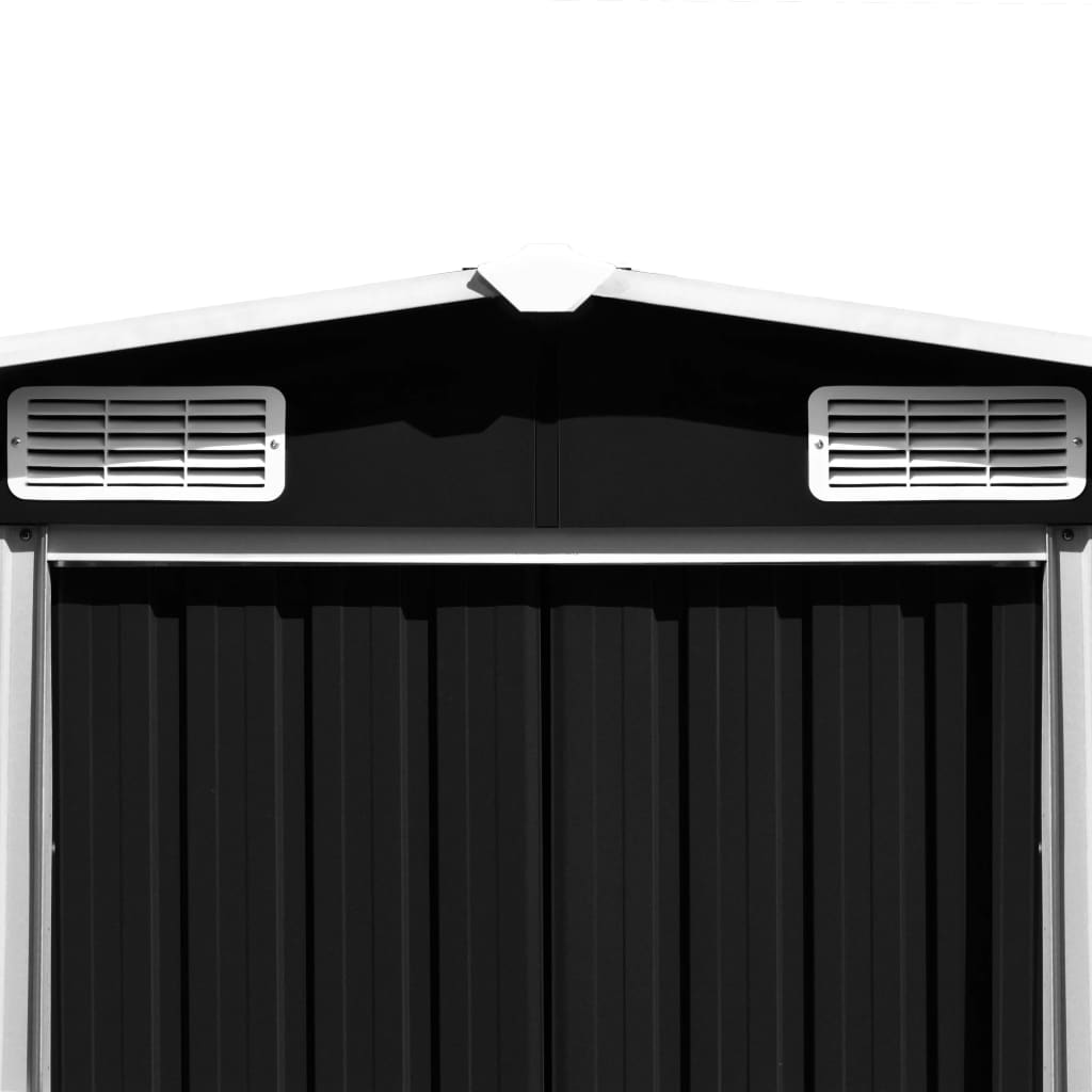 antracitszürke fém kerti fészer 257 x 298 x 178 cm