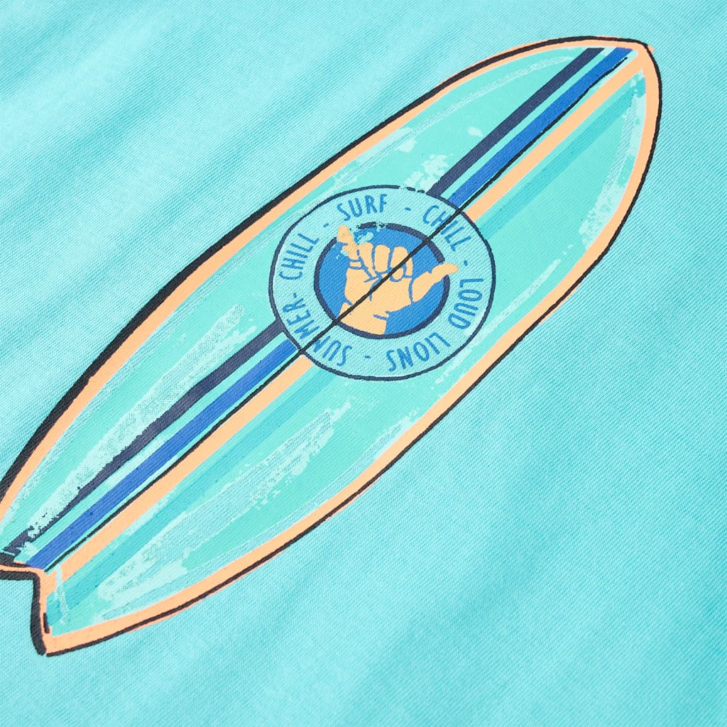 Ez a rövid ujjú gyerekpóló kerek nyakkivágású és egyenes szabású. A gyerekpóló elején színes szörfdeszka található. A gyerekpóló 100% pamutból készült a puha és kényelmes tapintás érdekében.