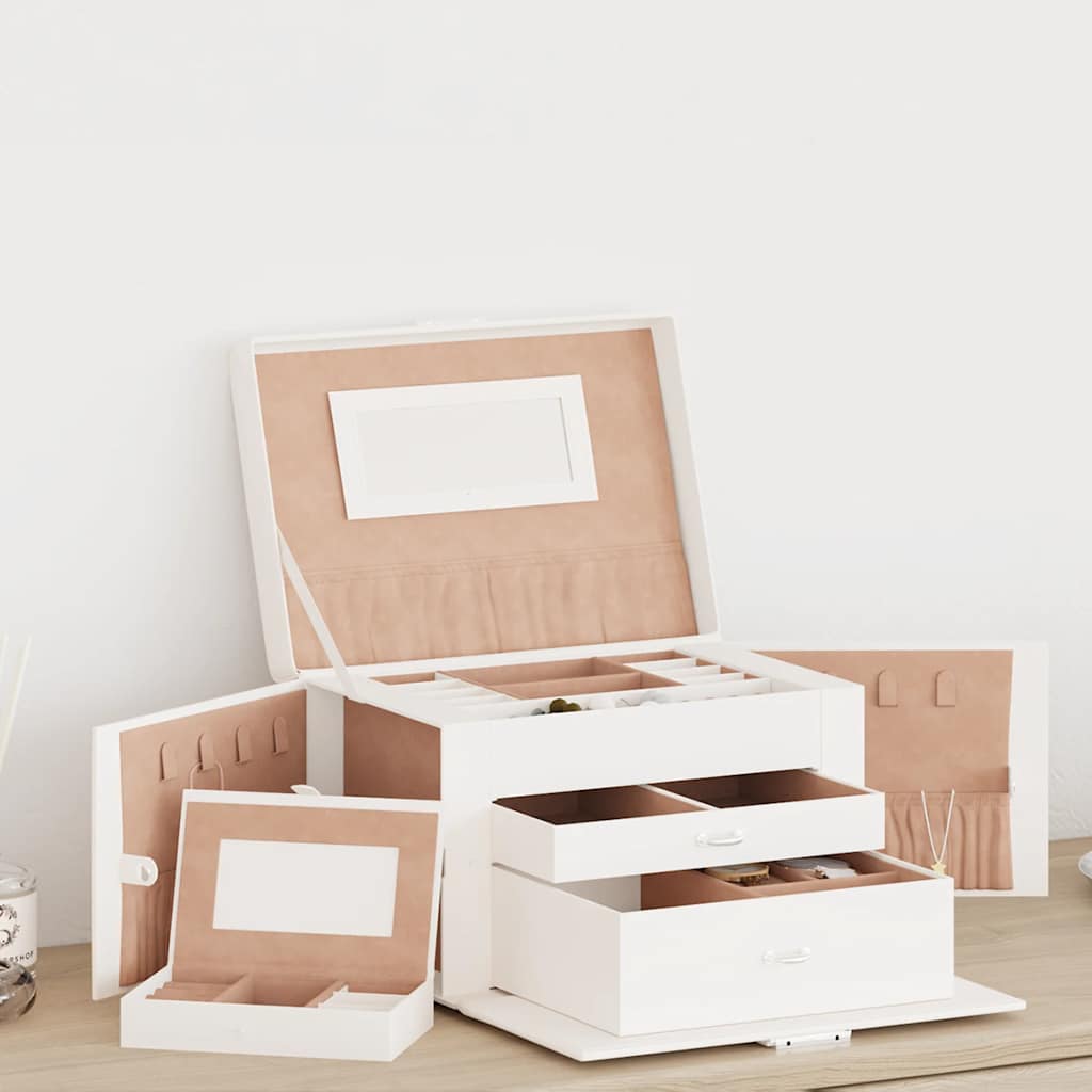 ékszerdoboz 3 rétegű tükörrel zárható fehér 26x18x17,5 cm