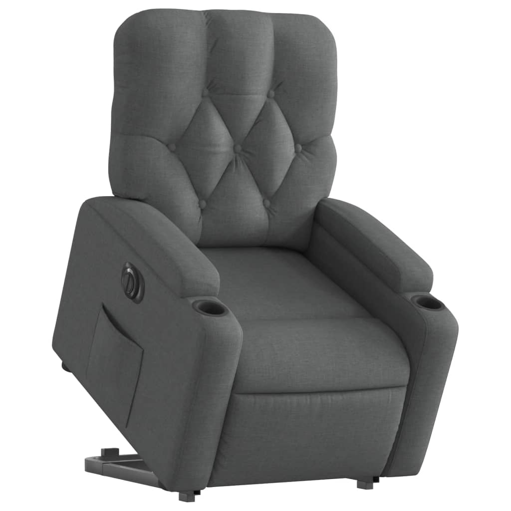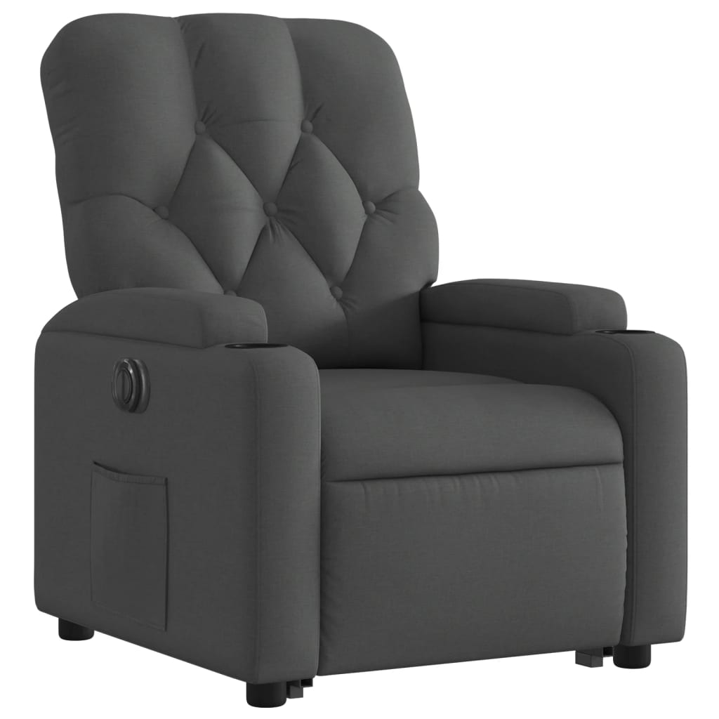 elektromos felállást segítő sötétszürke szövet dönthető fotel