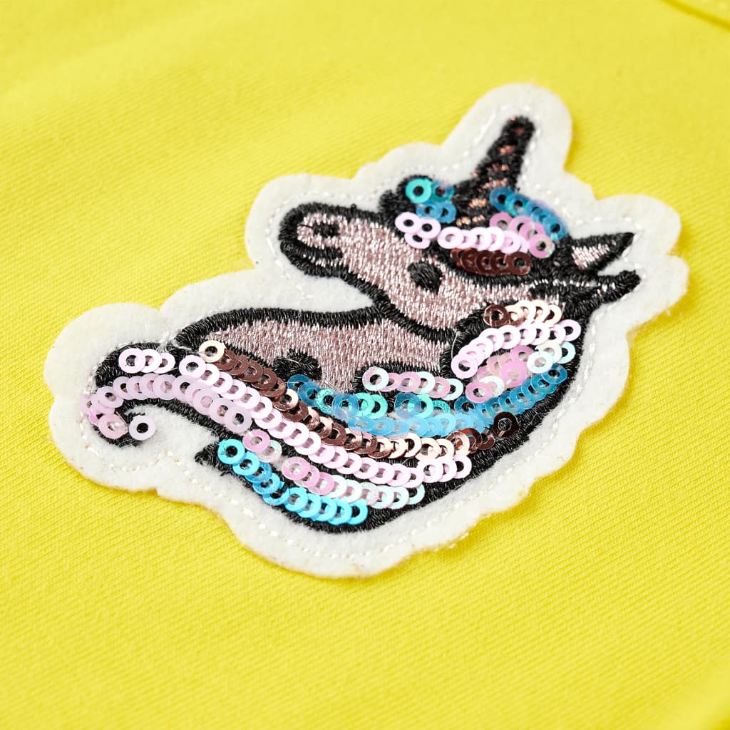 Ez a rövid ujjú gyerekpóló kerek nyakkivágású és egyenes szabású. A gyerekpólón aranyos unikornis látható. A gyerekpóló pamutból és elasztánból készült a puha és kényelmes tapintás érdekében.