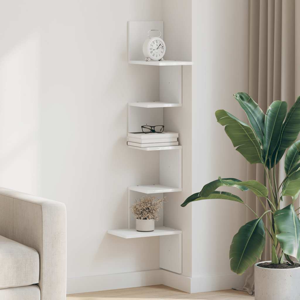 fehér forgácslap fali sarokpolc 32x32x127,5 cm