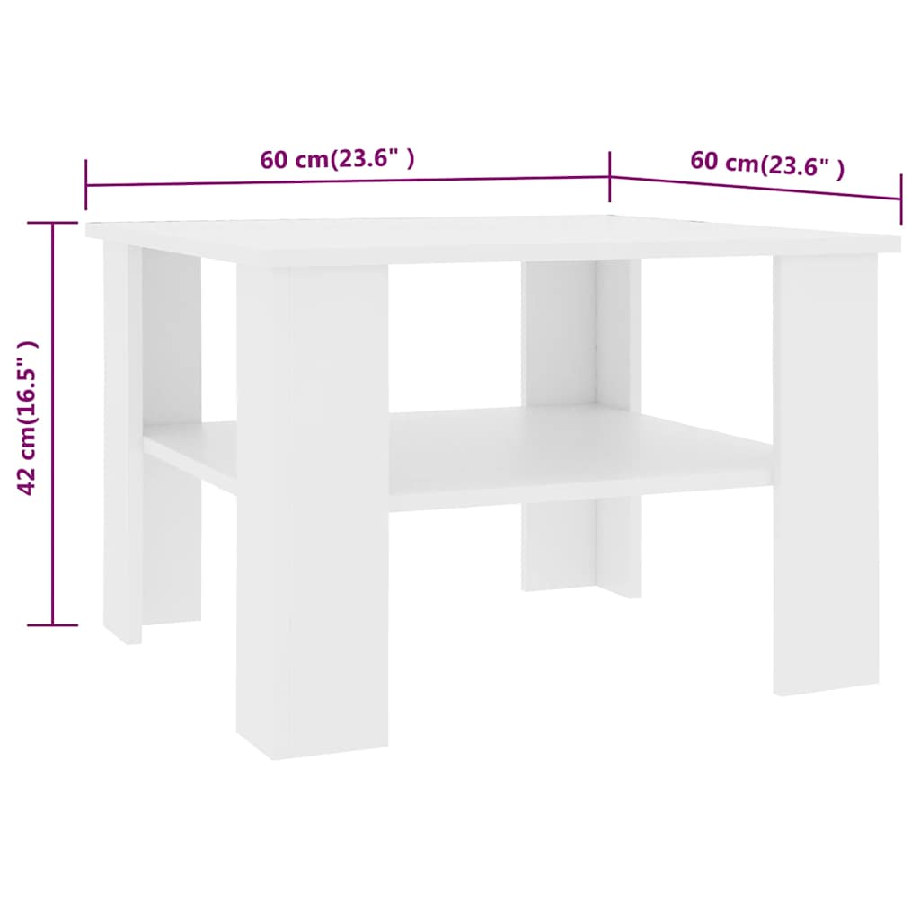 fehér szerelt fa dohányzóasztal 60 x 60 x 42 cm