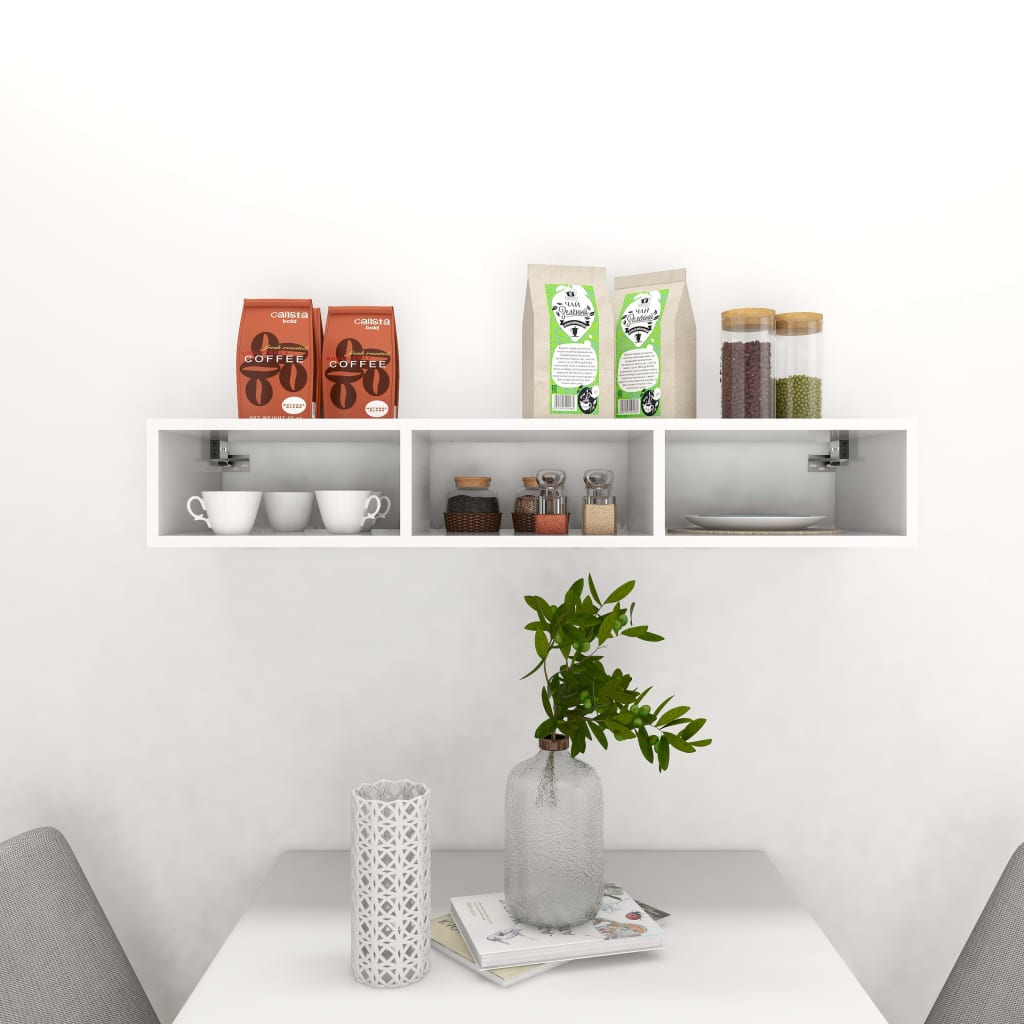 Ez a falra szerelhető szekrény 3 rekesszel rendelkezik, amelyek kielégítik a tárolási igényét. A felső szint stabil felületet biztosít, amelyen elhelyezheti könyveit vagy dísztárgyait. A lebegő szekrény TV-szekrényként, könyvespolcként, konyhai polcként is használható a nappaliban. Ezenkívül a polc könnyen tisztítható nedves ruhával.
