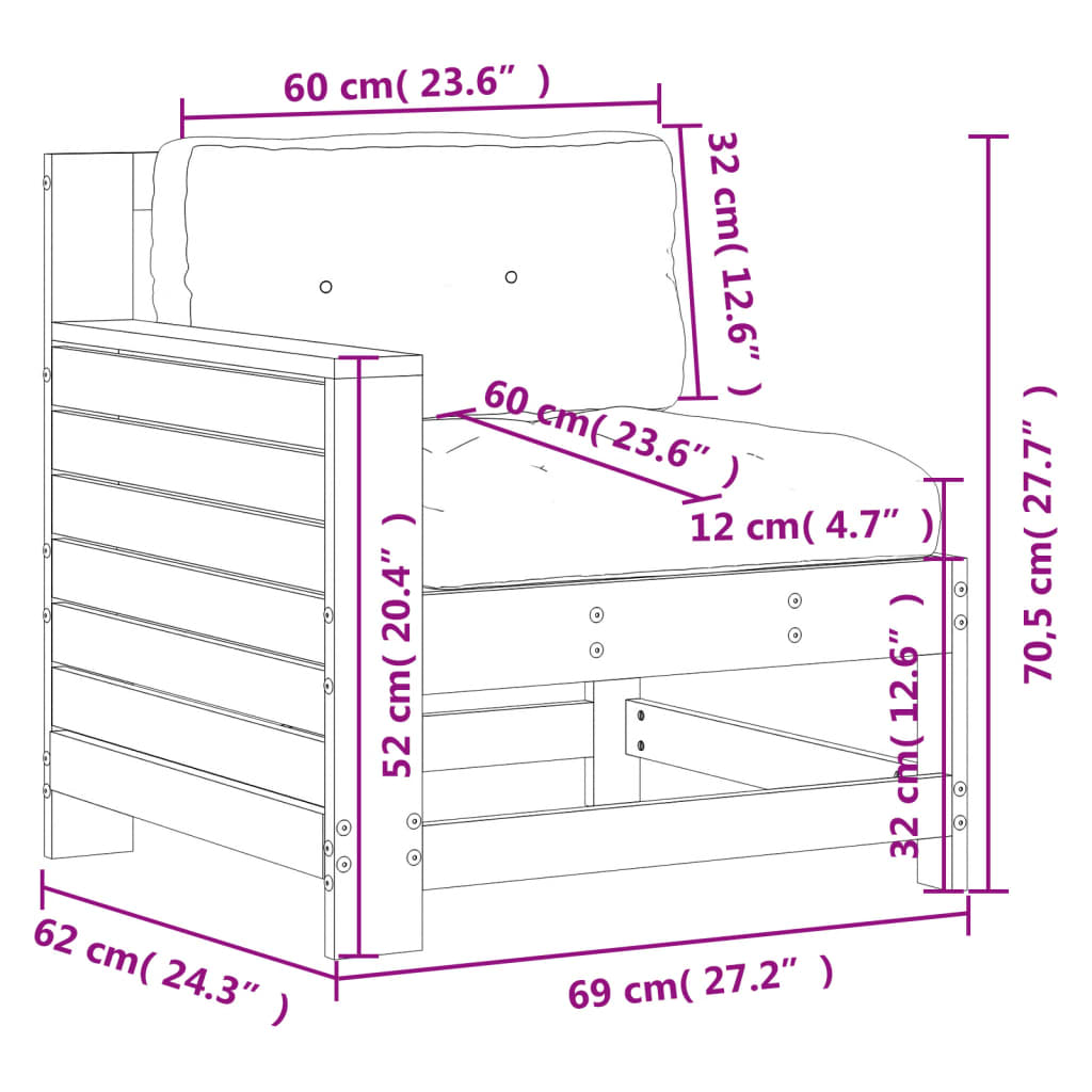 fehér tömör fenyőfa kerti karfás kanapé párnával