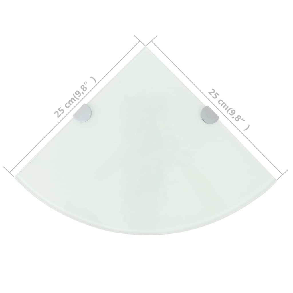 Fehér üveg sarokpolc króm tartóval 25x25 cm