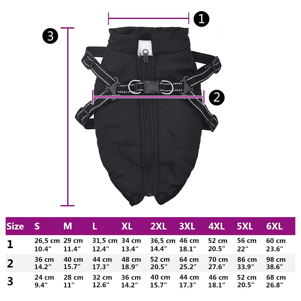 Tartsa melegen kutyáját a hideg napokon ezzel a kényelmes, beépített hámmal ellátott kutyakabáttal!