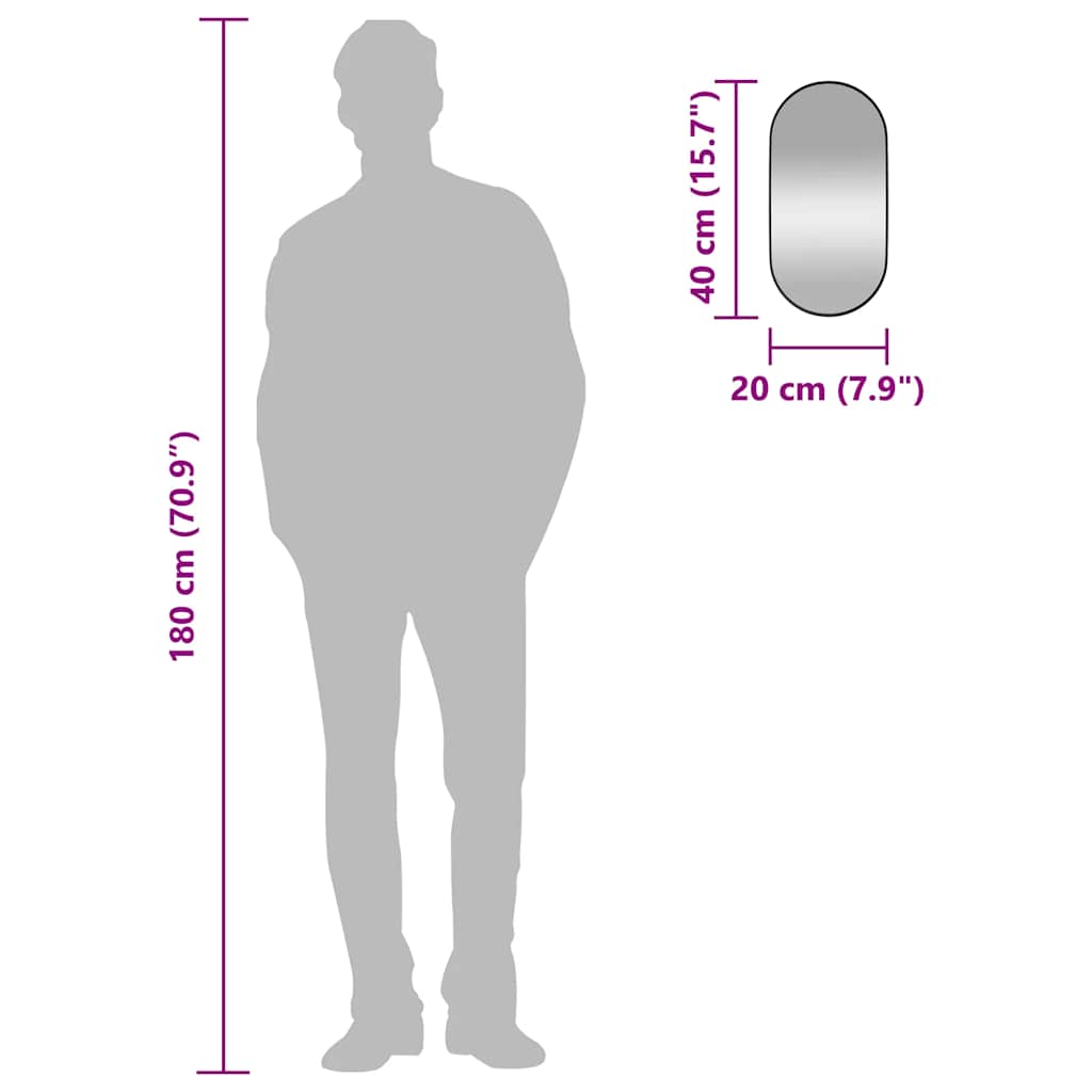 fekete ovális falra szerelhető tükör 20 x 40 cm