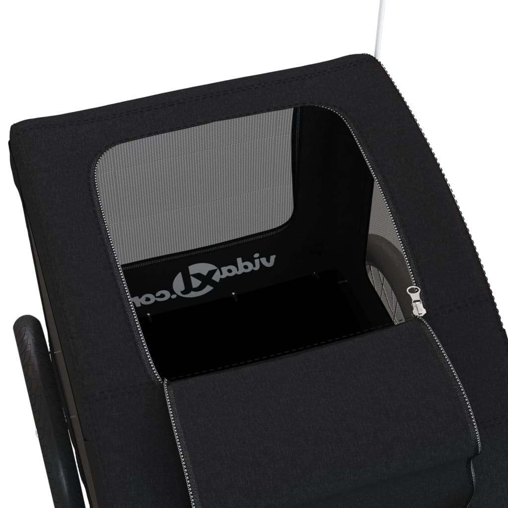 fekete oxford szövet és vas kisállatszállító kerékpár-utánfutó