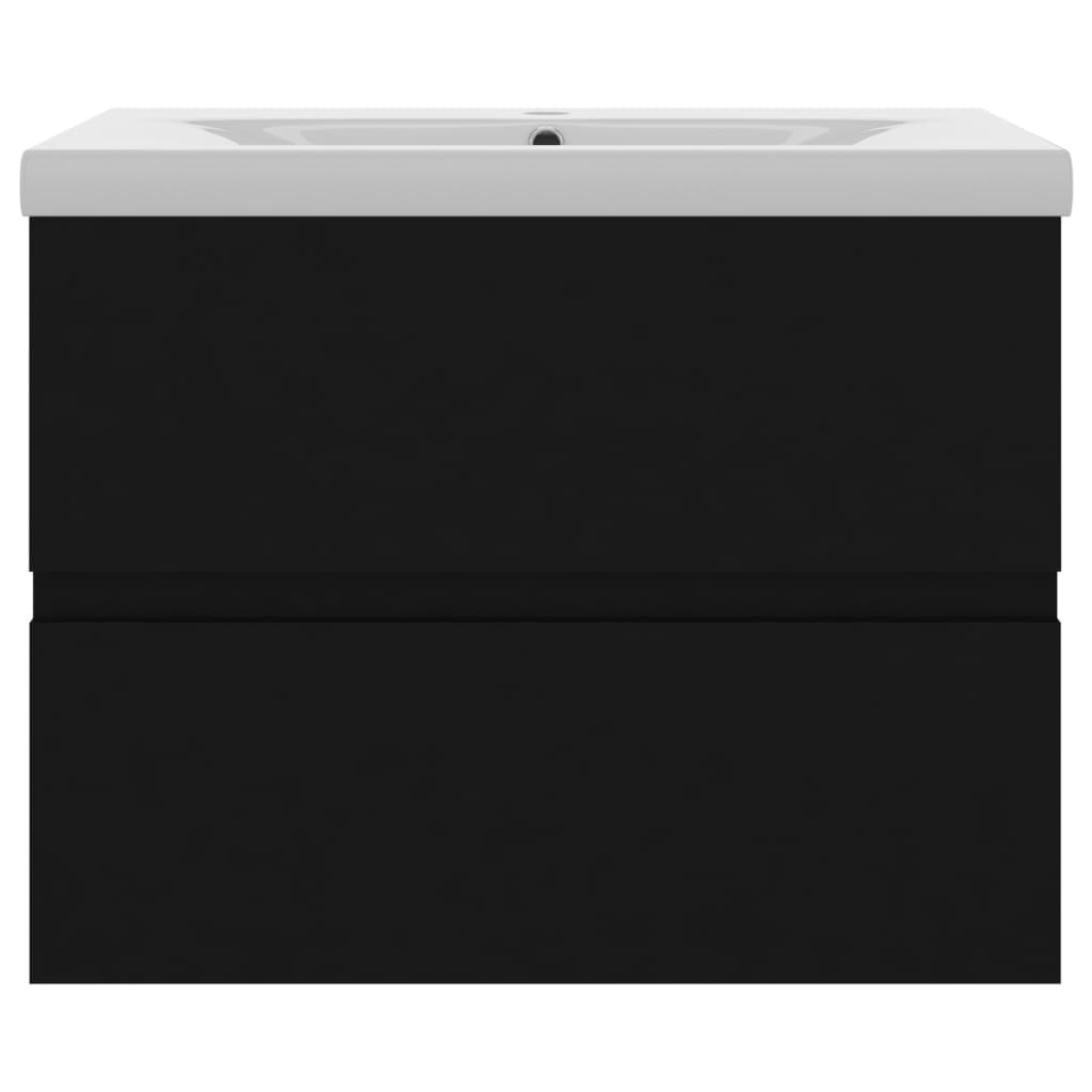 fekete szerelt fa mosdószekrény beépített mosdókagylóval