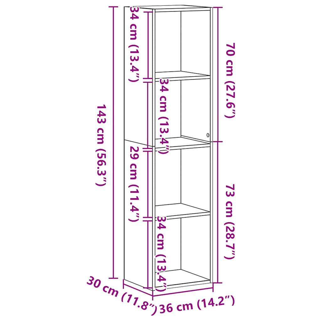 fekete tölgy szerelt fa könyvespolc 36x30x143 cm