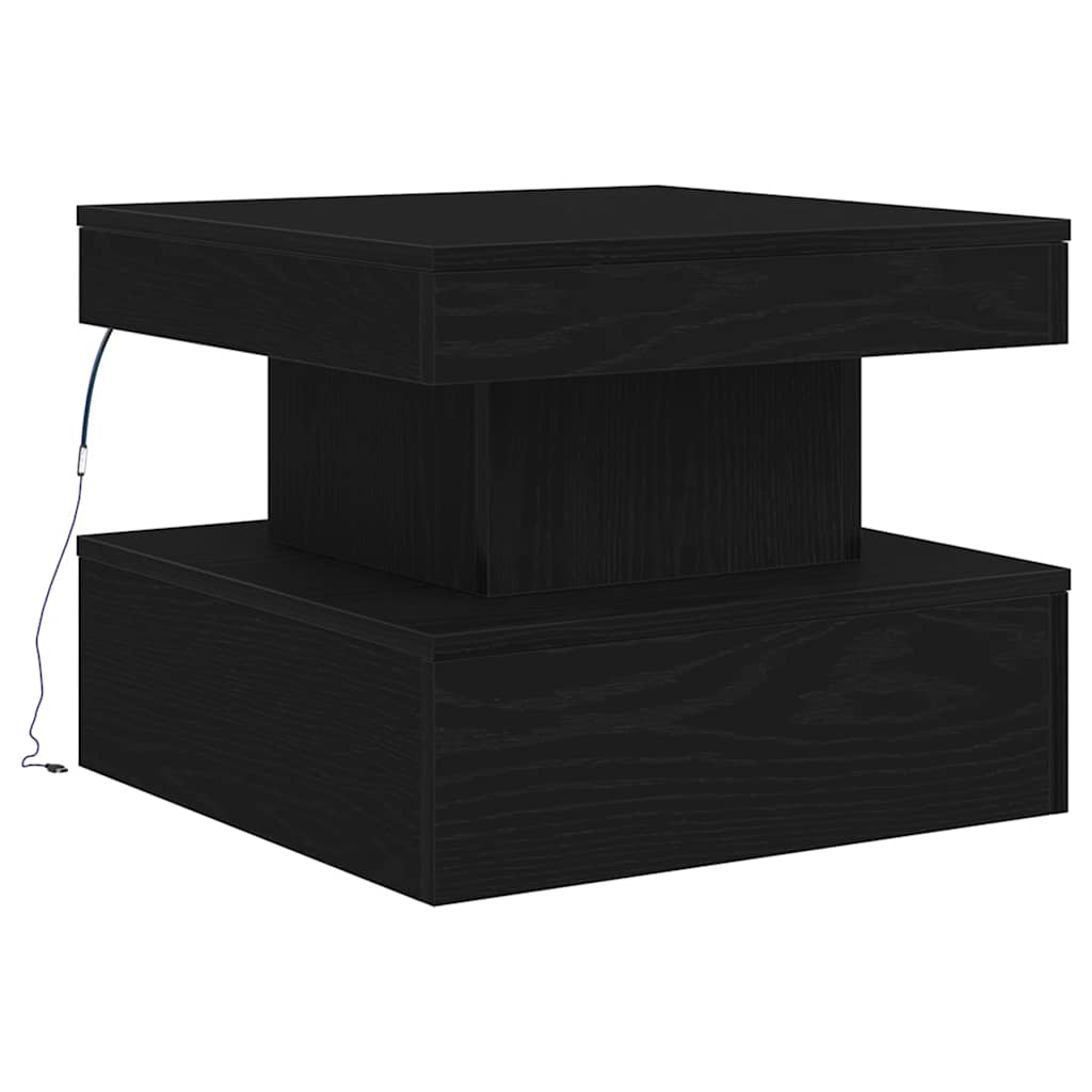 fekete tölgyszínű dohányzóasztal LED-lámpákkal 50 x 50 x 40 cm