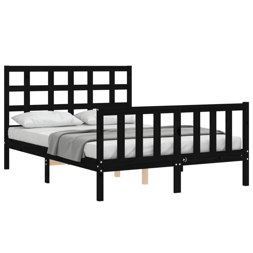 fekete tömör fa ágykeret fejtámlával 140 x 190 cm