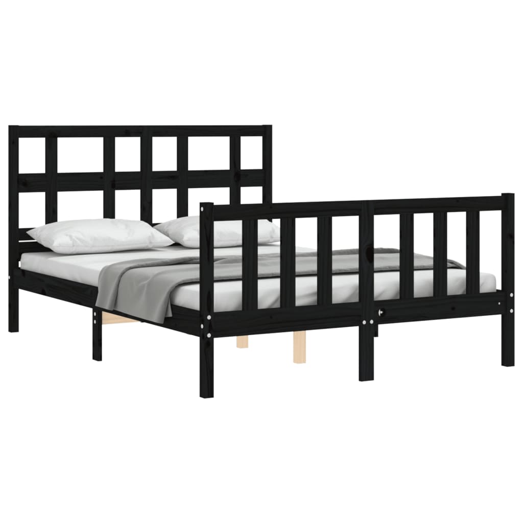 fekete tömör fa ágykeret fejtámlával 140 x 190 cm
