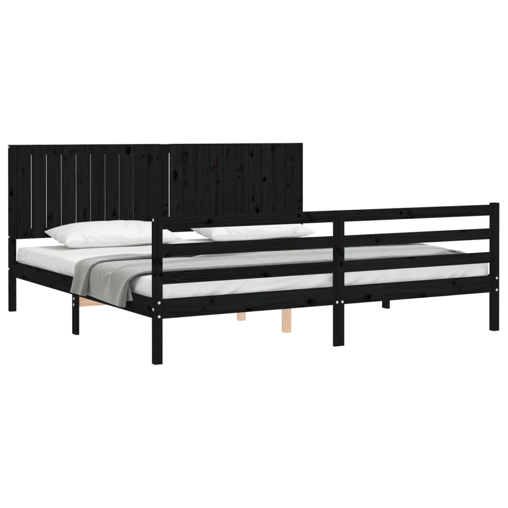 fekete tömör fa ágykeret fejtámlával 200 x 200 cm