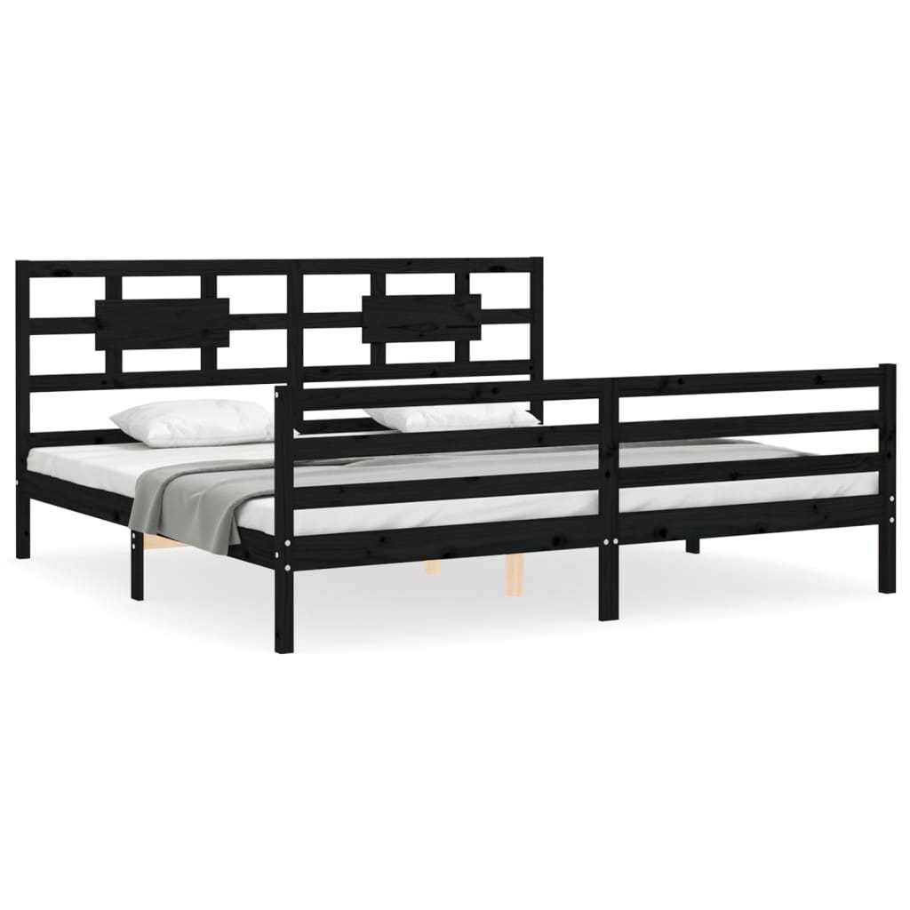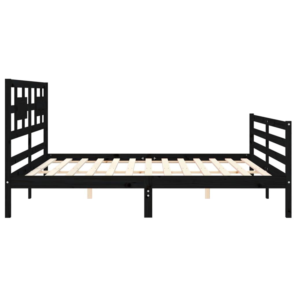 fekete tömör fa ágykeret fejtámlával 200 x 200 cm