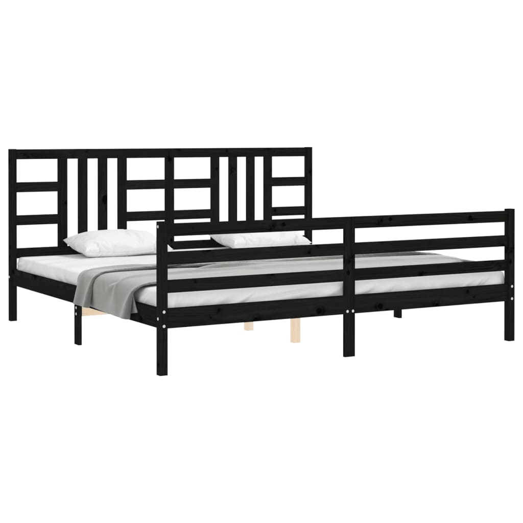 fekete tömör fa ágykeret fejtámlával 200 x 200 cm