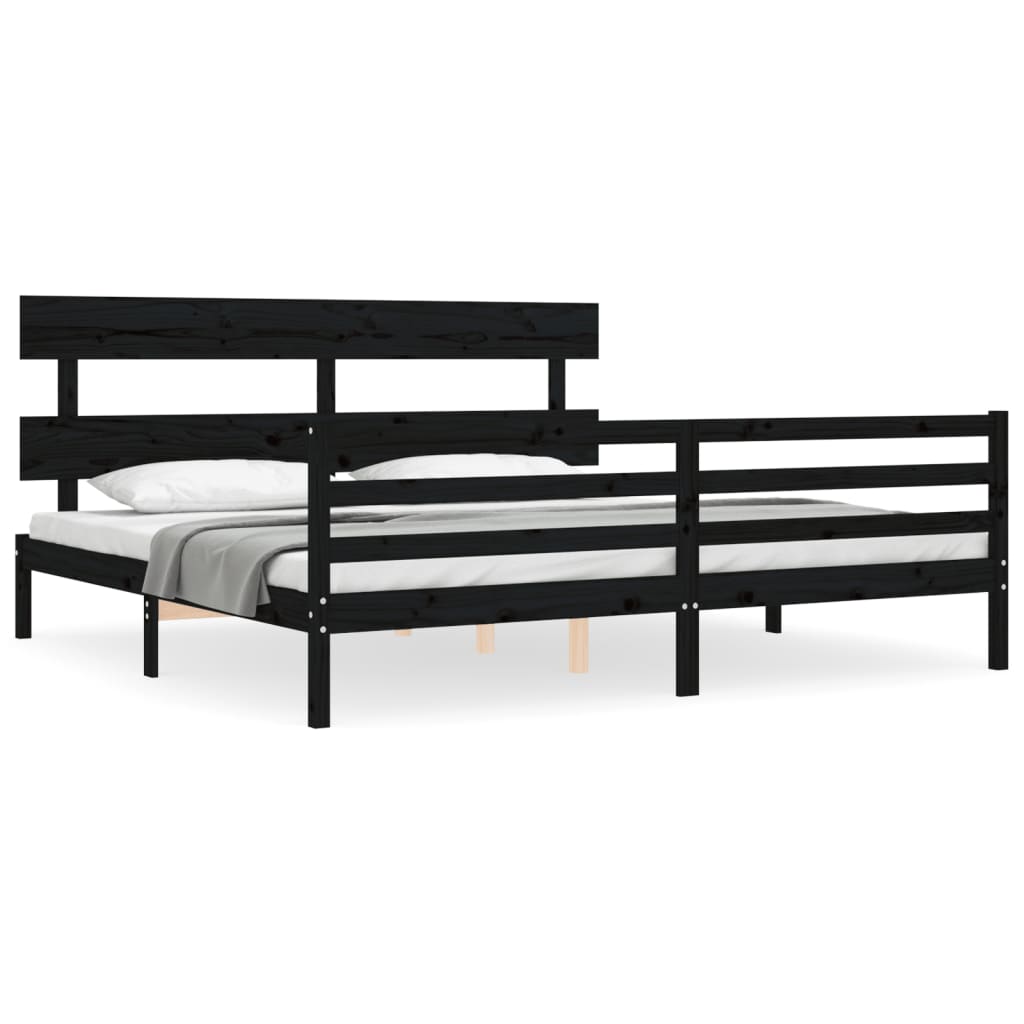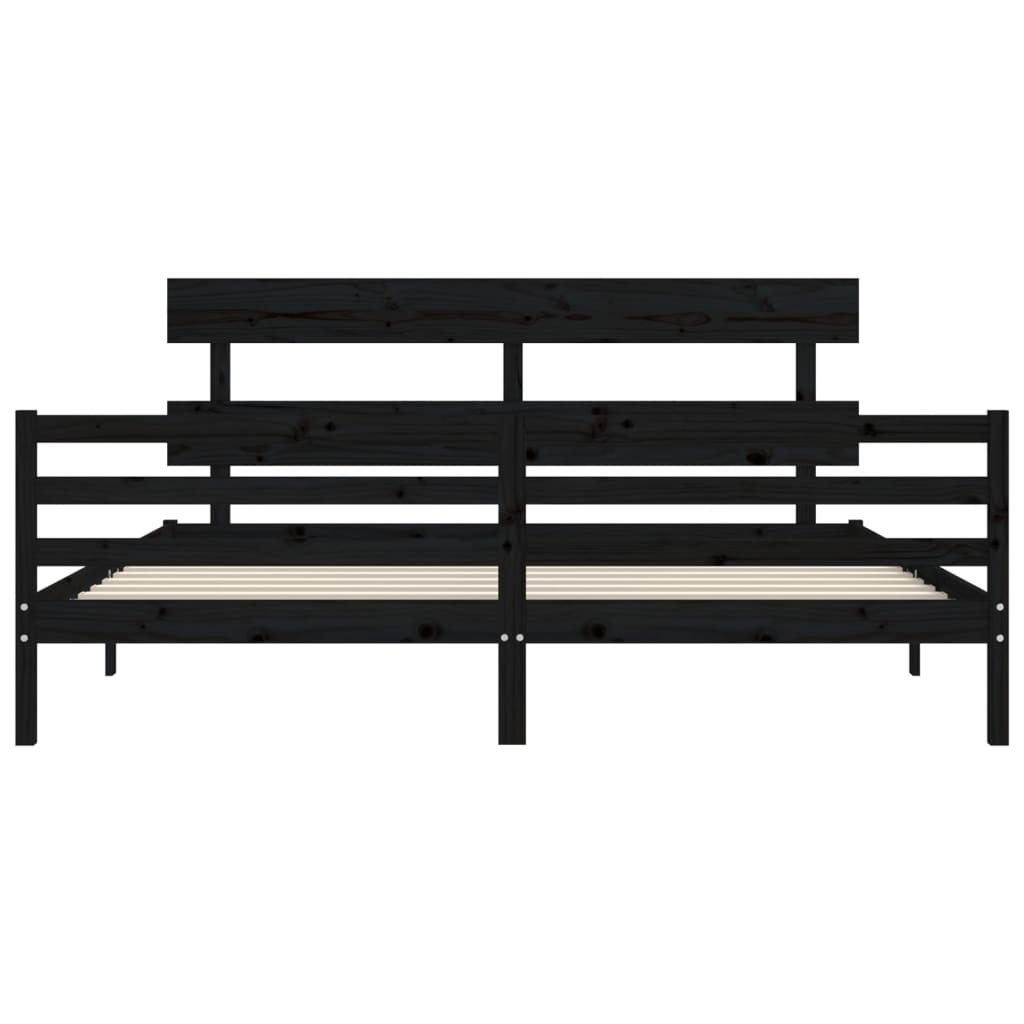 fekete tömör fa ágykeret fejtámlával 200 x 200 cm