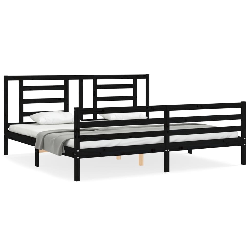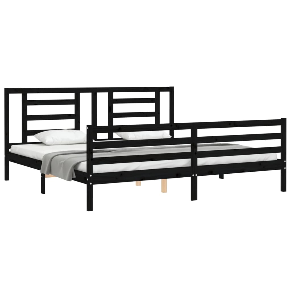 fekete tömör fa ágykeret fejtámlával 200 x 200 cm