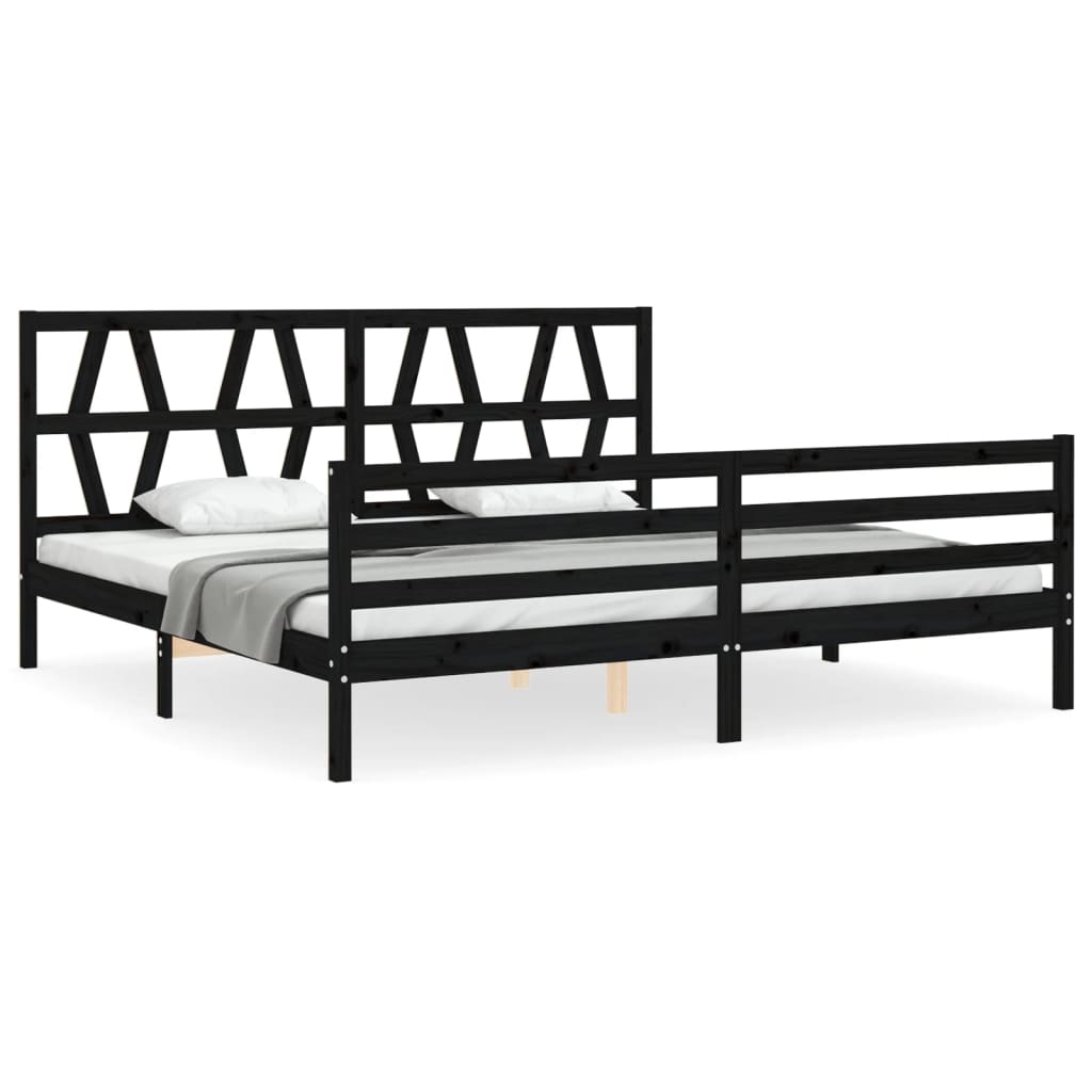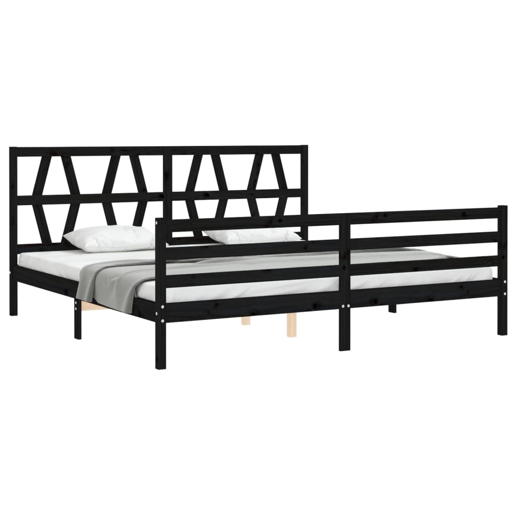 fekete tömör fa ágykeret fejtámlával 200 x 200 cm
