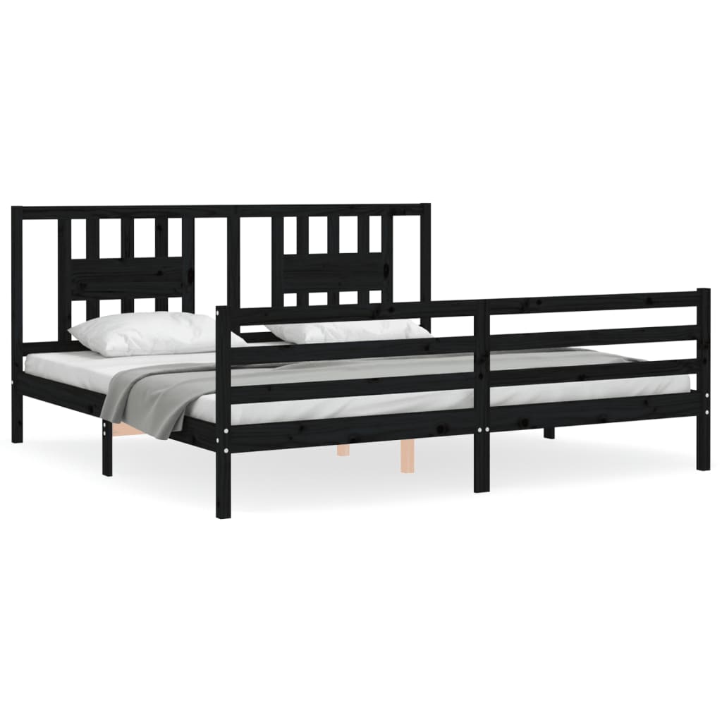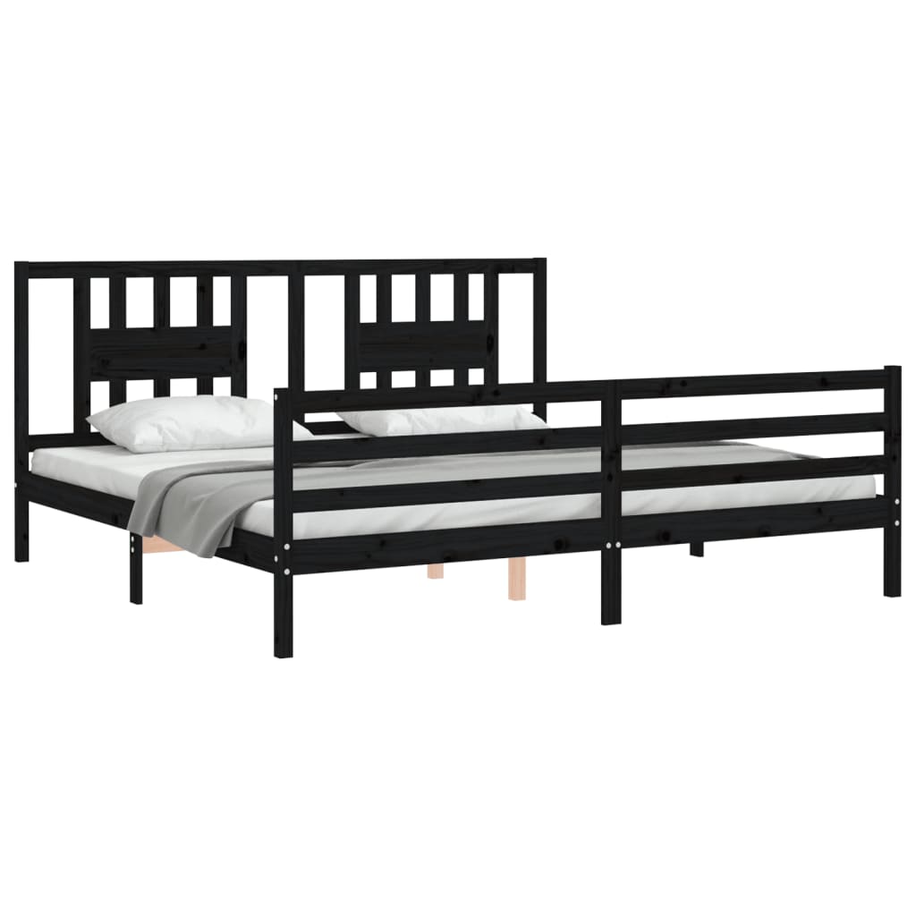 fekete tömör fa ágykeret fejtámlával 200 x 200 cm