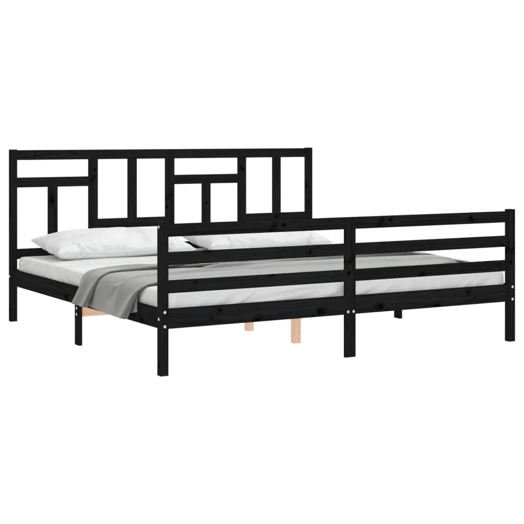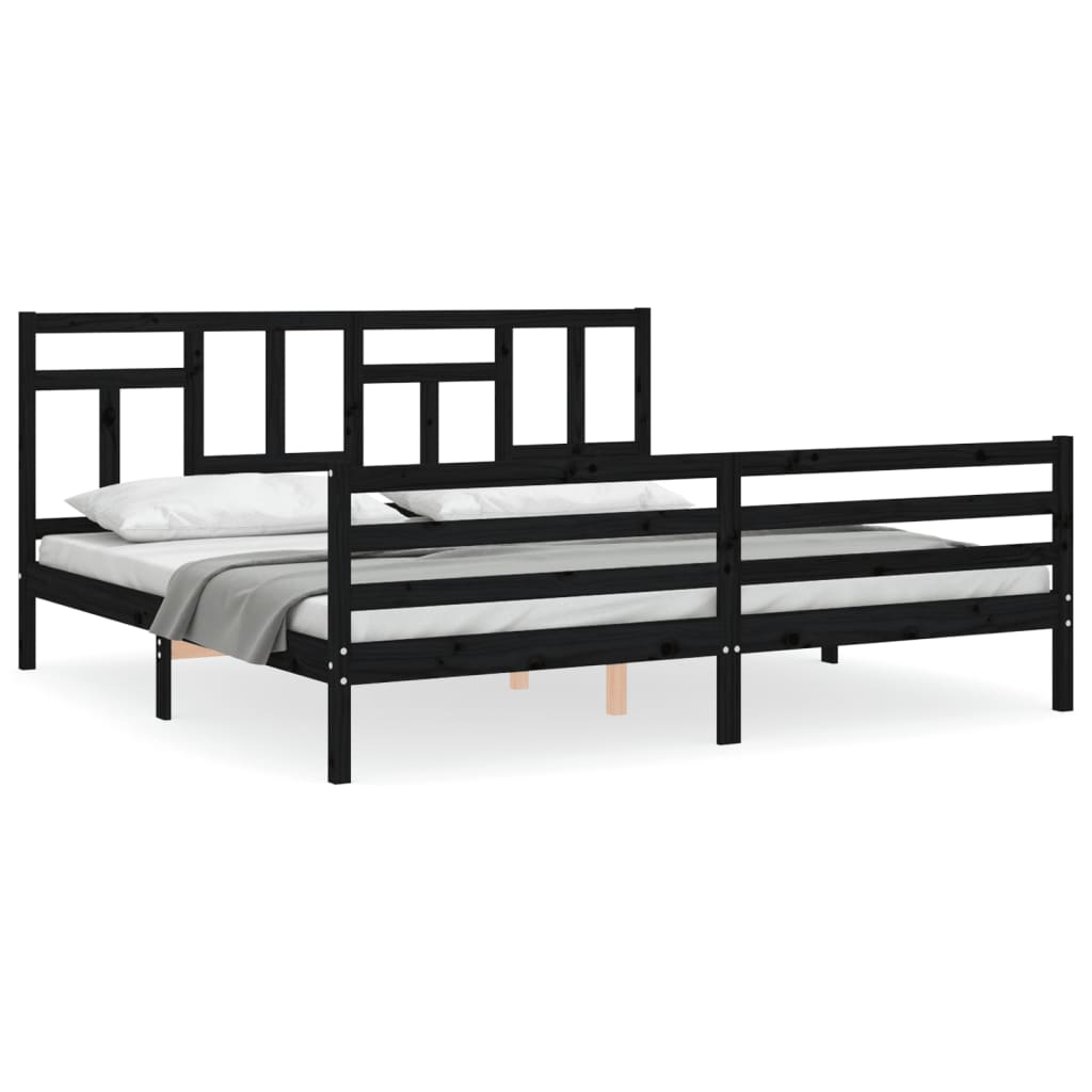 fekete tömör fa ágykeret fejtámlával 200 x 200 cm