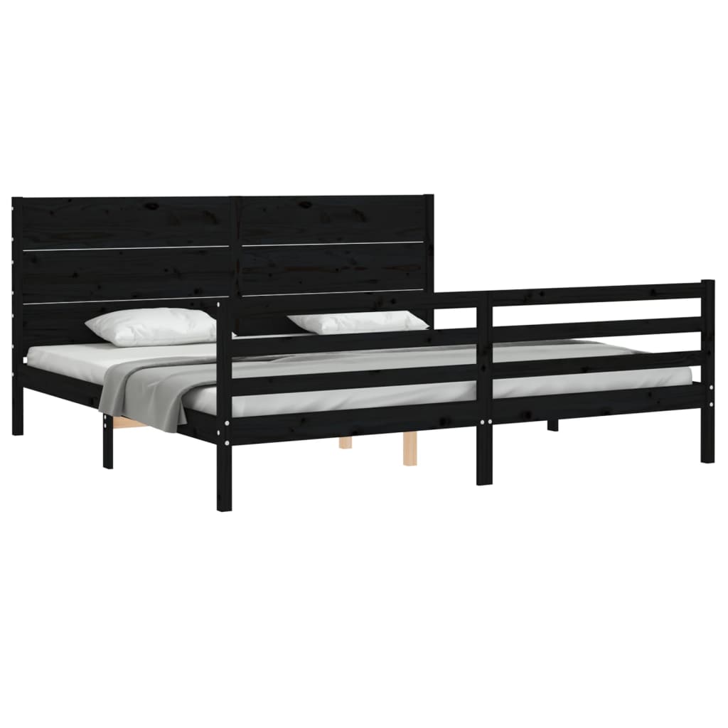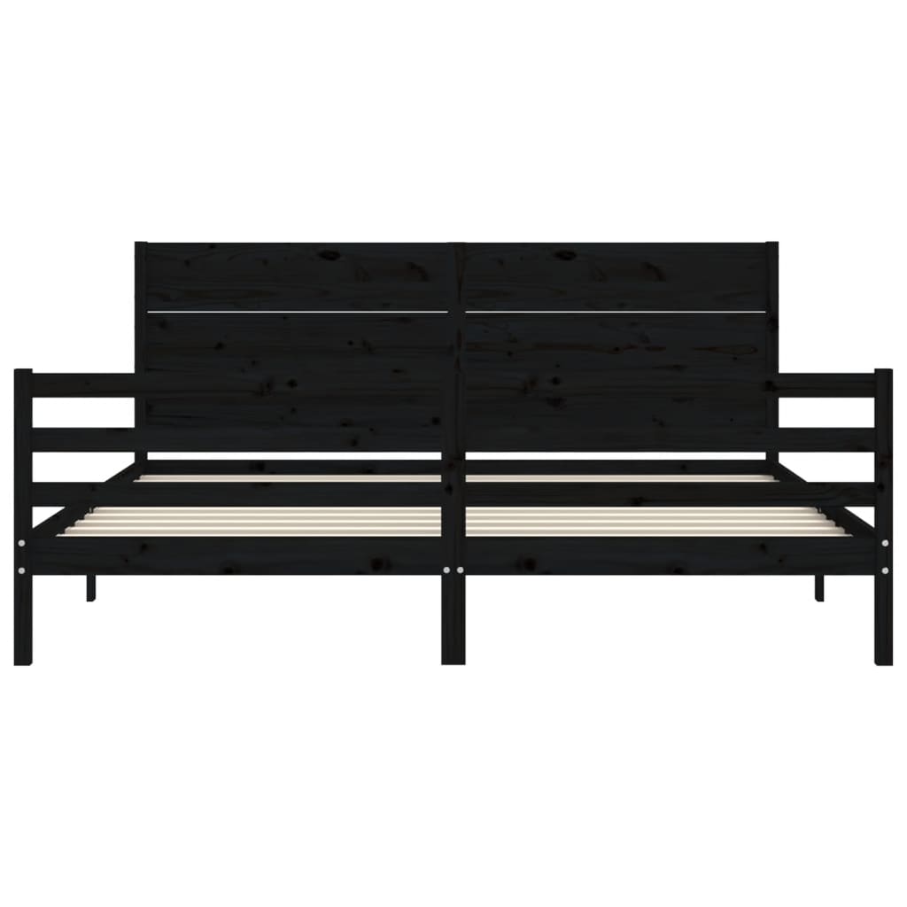 fekete tömör fa ágykeret fejtámlával 200 x 200 cm