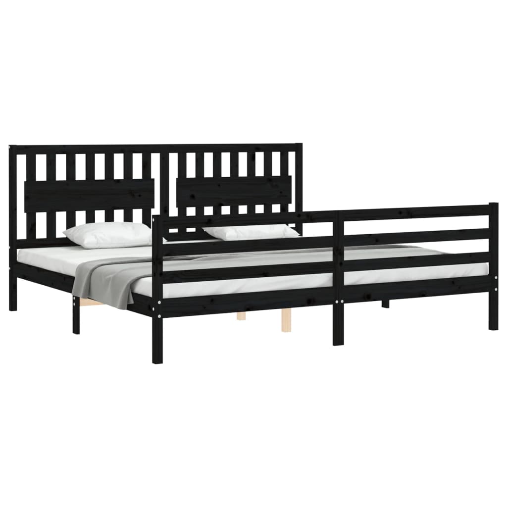 fekete tömör fa ágykeret fejtámlával 200 x 200 cm