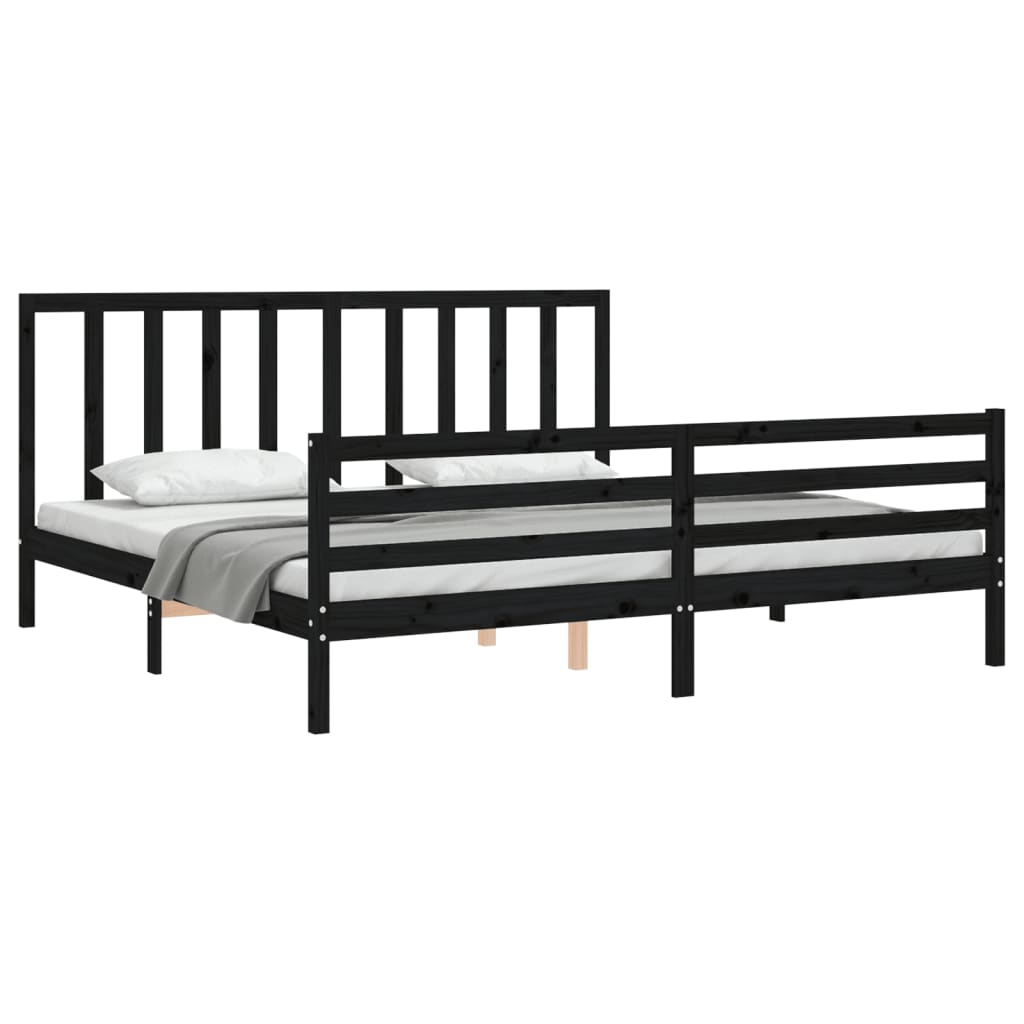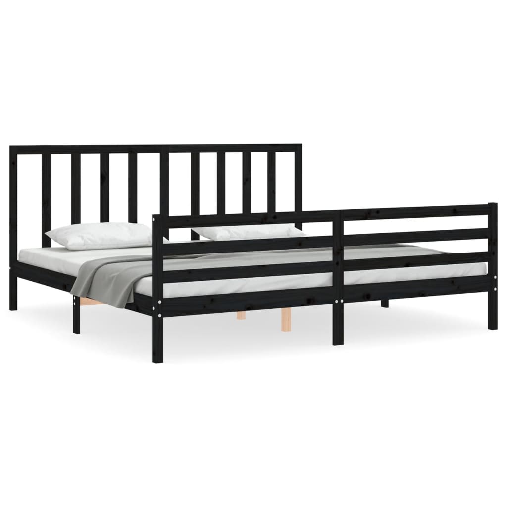 fekete tömör fa ágykeret fejtámlával 200 x 200 cm