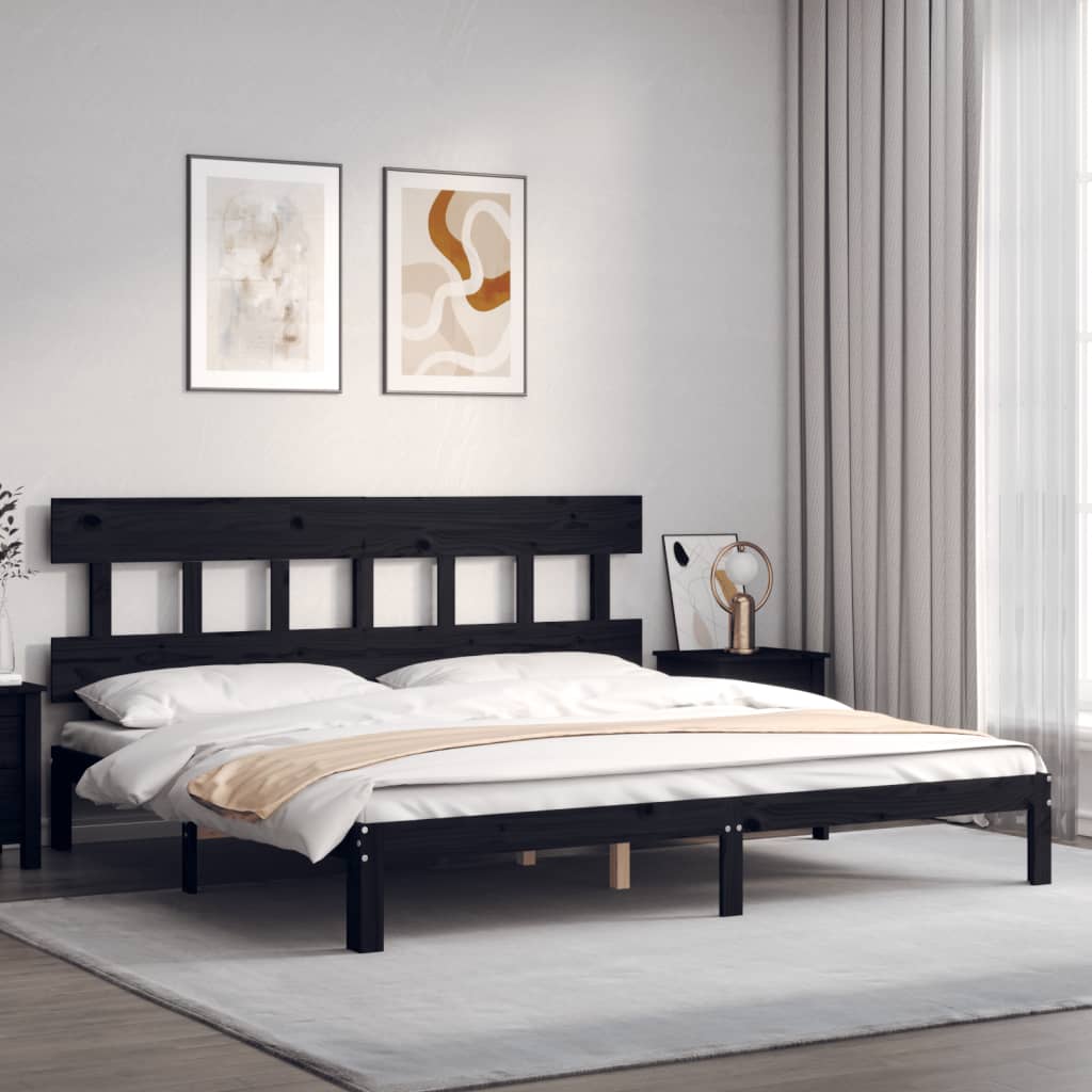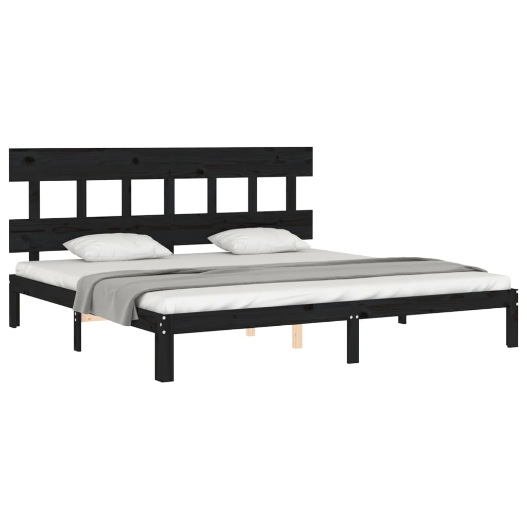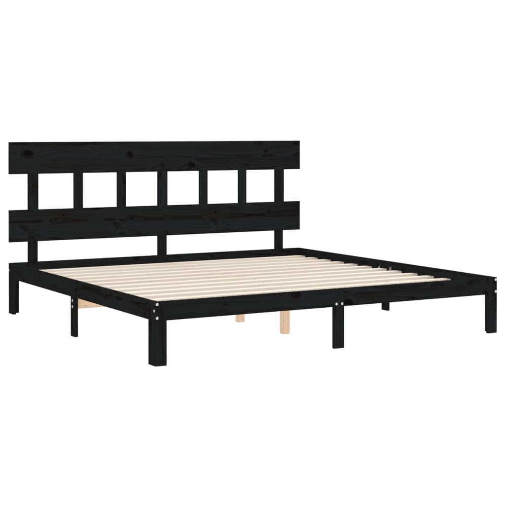 fekete tömör fa ágykeret fejtámlával 200 x 200 cm
