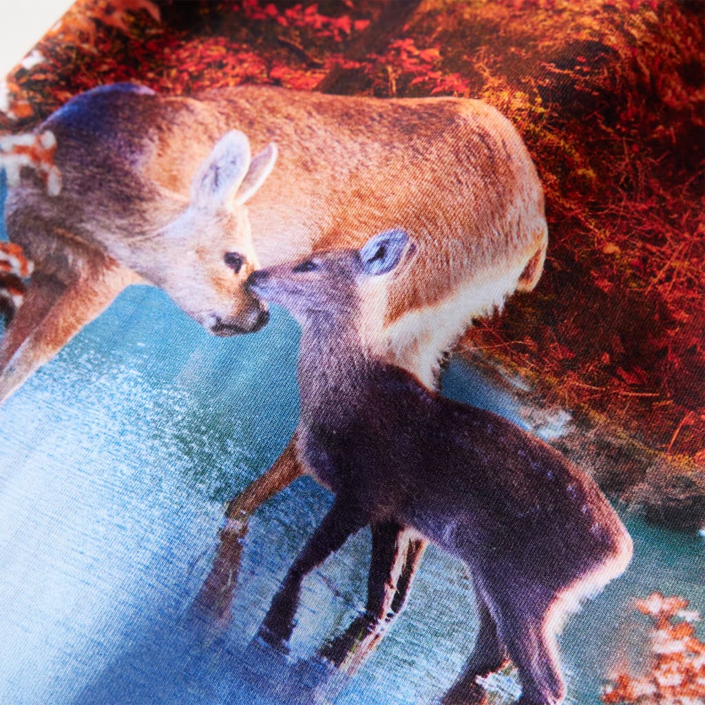 Ez a gyerekruha hosszú ujjú, kerek nyakkivágással rendelkezik, és hátul cipzárral záródik. Ez a régi rózsaszín gyermekruha egy szép szarvasos mintával rendelkezik. A gyerek rövid ruha puha anyagból készült, amely pamutot, és elasztánt tartalmaz a kényelem és a légáteresztő képesség érdekében.