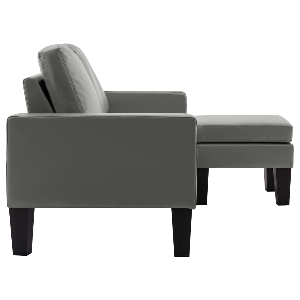 háromszemélyes szürke műbőr kanapé lábzsámollyal