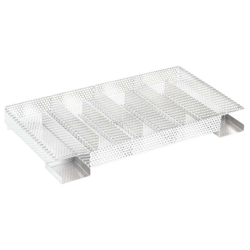 - Hidegfüst-generátor: Egyszerűen töltse fel fűrészporral, és gyújtsa meg egy teamécsessel, amíg a fűrészpor el nem kezdi megváltoztatni a színét. Távolítsa el a teamécsest, és helyezze a füstgenerátort a hideg füstölő szekrénybe. A téglalap alakú kompakt háló lehetővé teszi a füstölőforgácsok egyenletes és lassú égését akár 20 órán keresztül.
