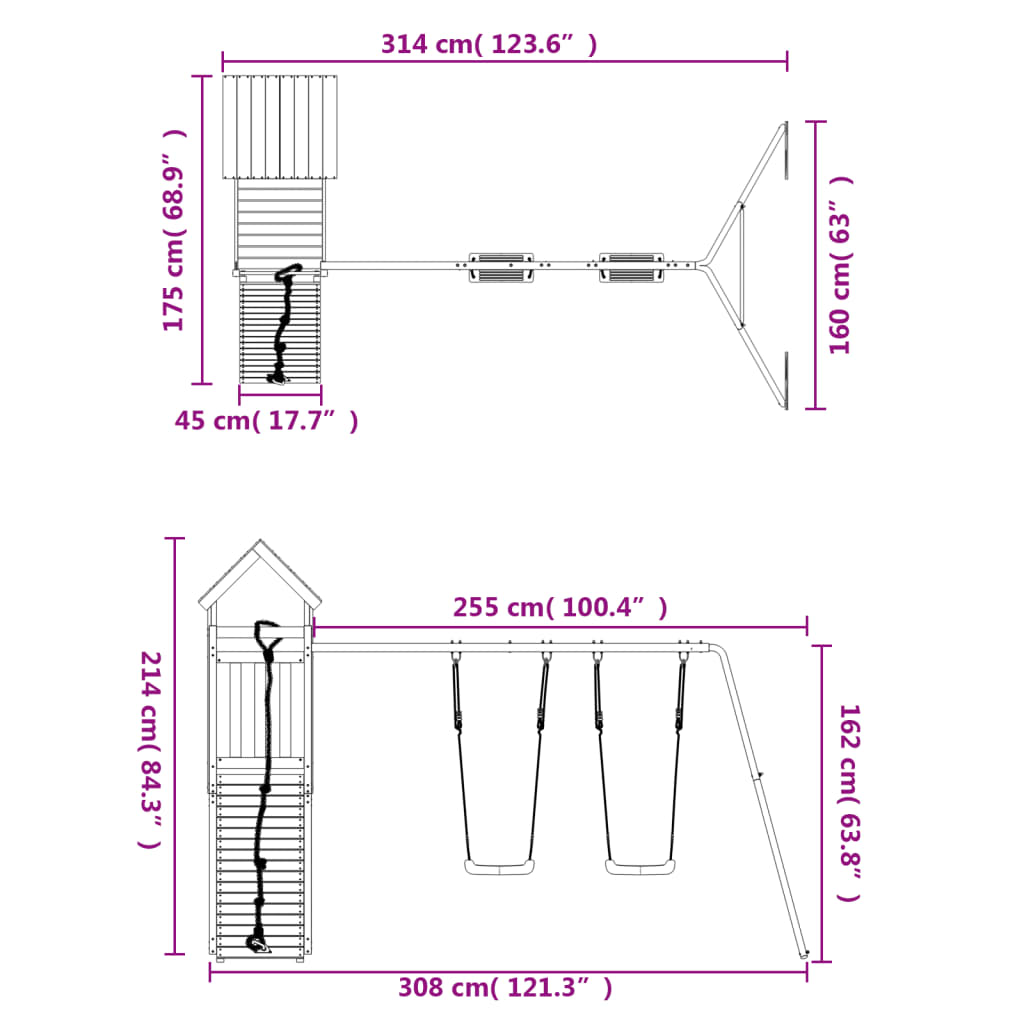 - Multi-aktivitási központ: A mászóka 90 cm magas emelvénnyel rendelkezik, és kiemelkedik a kötéllel ellátott mászófallal, a két hintával, valamint homokozóval. A kicsik barátaikat is meghívhatják a szórakozásra.