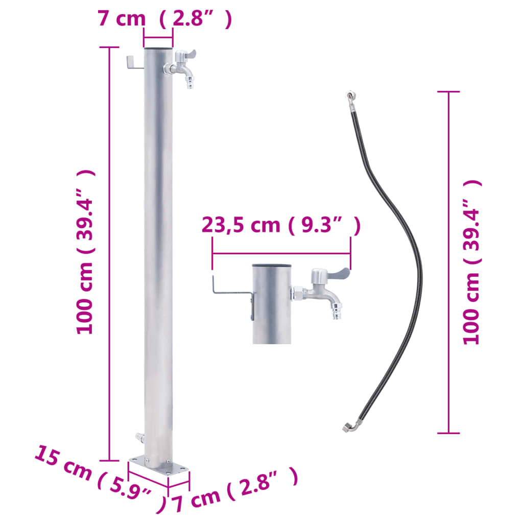 kerek rozsdamentes acél kerti oszlop típusú vízcsap 100 cm