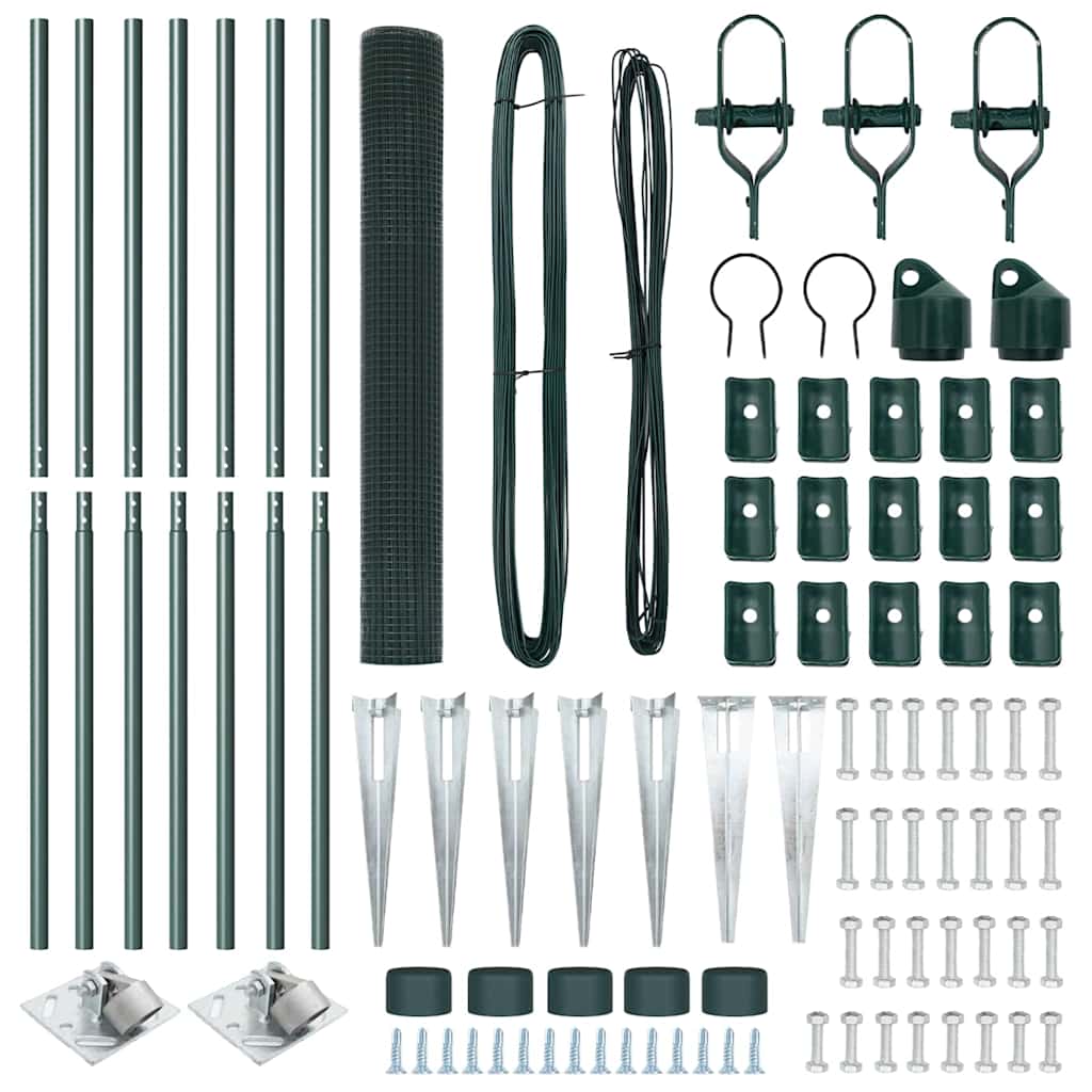 Kerítés oszlopokkal Zöld 1 x 10 m Acél
