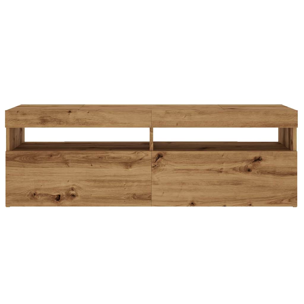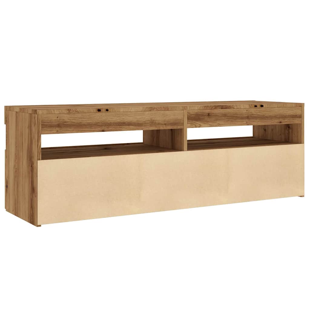 kézműves tölgy szerelt fa TV-szekrény LED-ekkel 120x35x40 cm