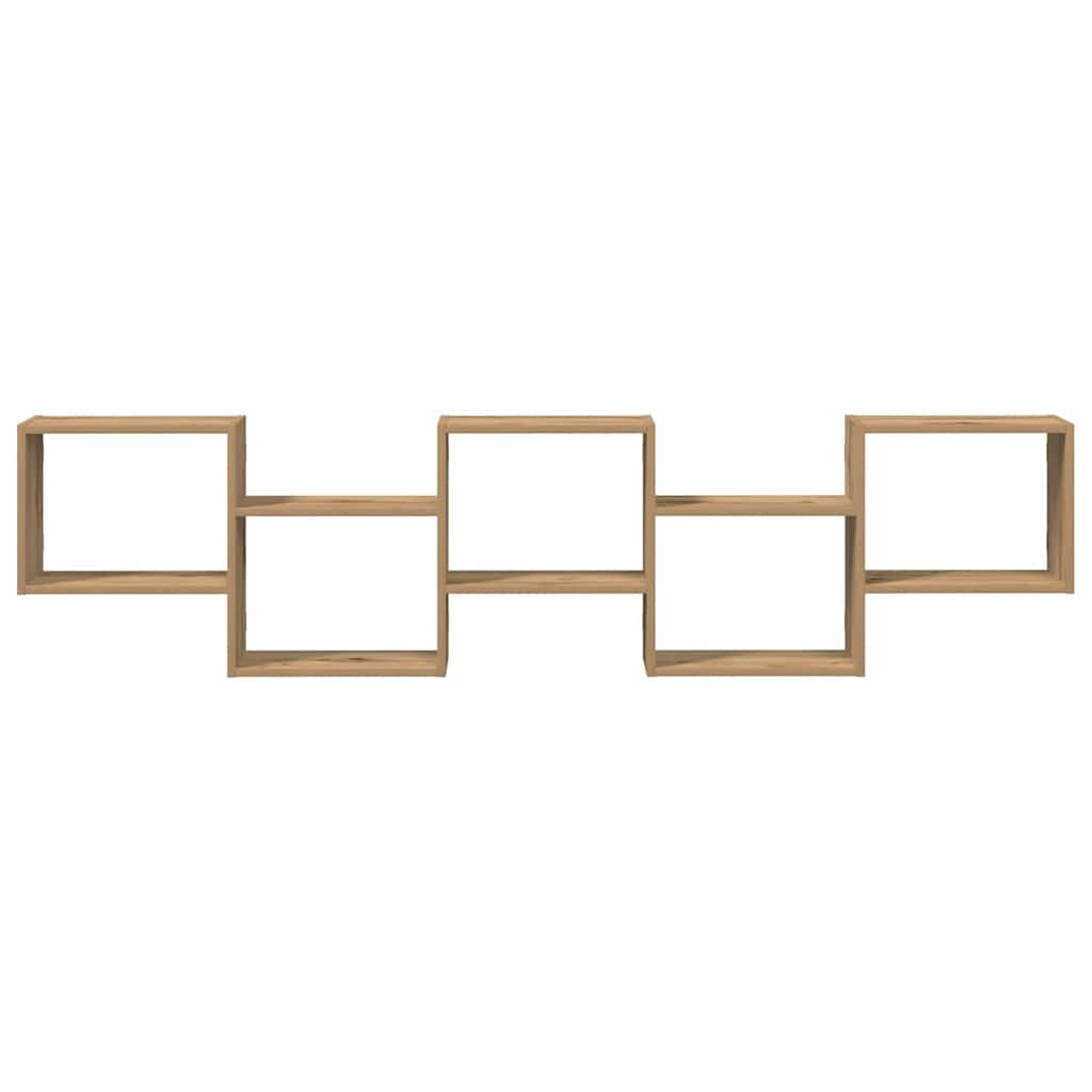 kézműves tölgy színű szerelt fa fali kockapolc 5 rekeszes színű