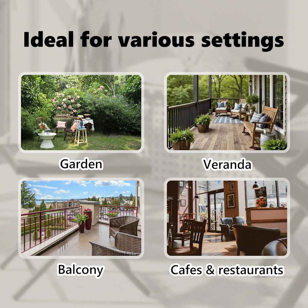 A poliamid bevonattal ellátott kiváló minőségű anyag fakulásálló és védelmet nyújt a nap káros sugaraival szemben, miközben légáteresztő-képességét is megtartja. Könnyen fel- és letekerhető a kézi karral. Ez a függőleges redőny két álló állvánnyal rendelkezik, melyek magassága 2 és 3 m között állítható. A legtöbb mennyezetmagasság esetében használható, és könnyen felszerelhető.