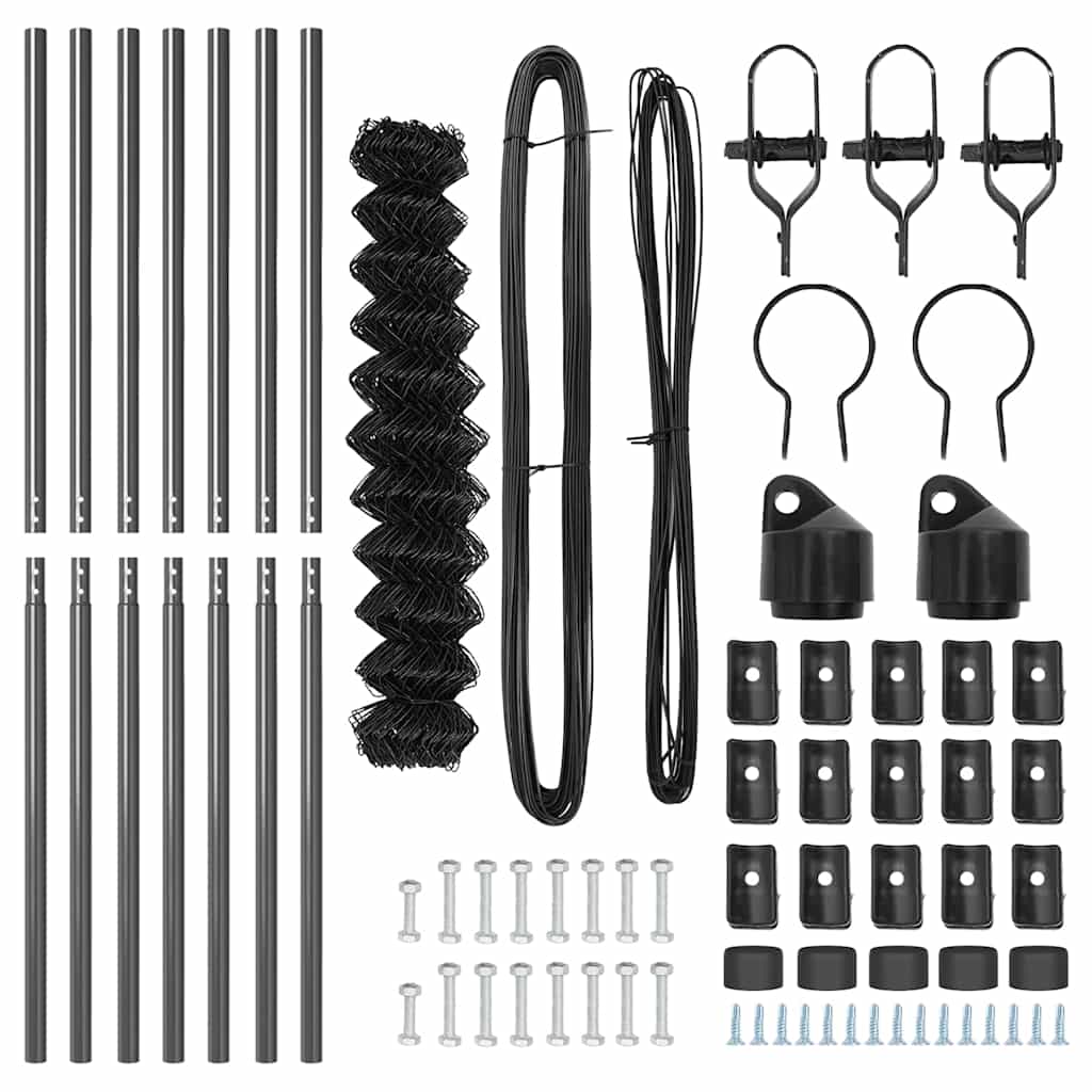 Lánckerítés oszlopokkal Szürke 1 x 10 m Acél
