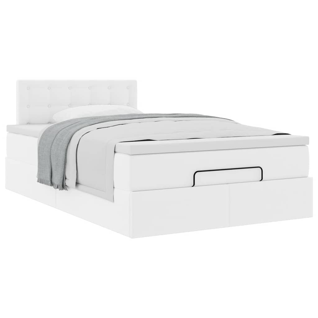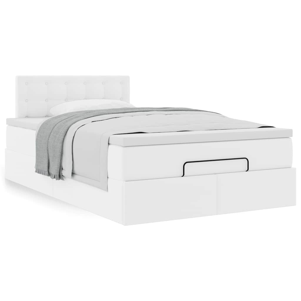 Ottomán ágykeret matraccal Fehér 120x200cm műbőrrel