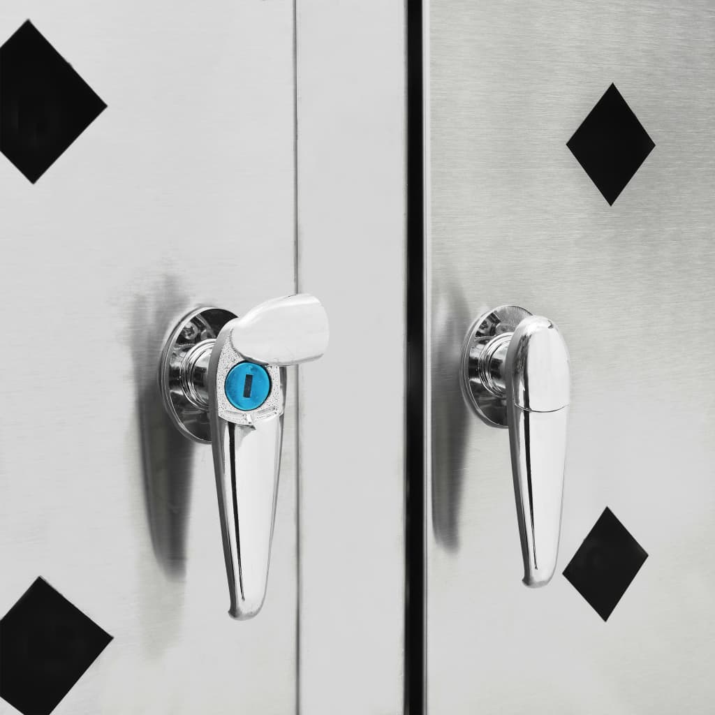 A rozsdamentes acélból készült kukatároló rendkívül időjárásálló és tartós. A hasznos szellőzőnyílások lehetővé teszik a szellőzést, és megakadályozzák a kellemetlen szagok elterjedését a tárolóban, a zár pedig biztosítja a szemetes biztonságos tárolását. Emellett a praktikus ajtó lehetővé teszi, hogy a szemeteskukát könnyen betegye és kivegye.